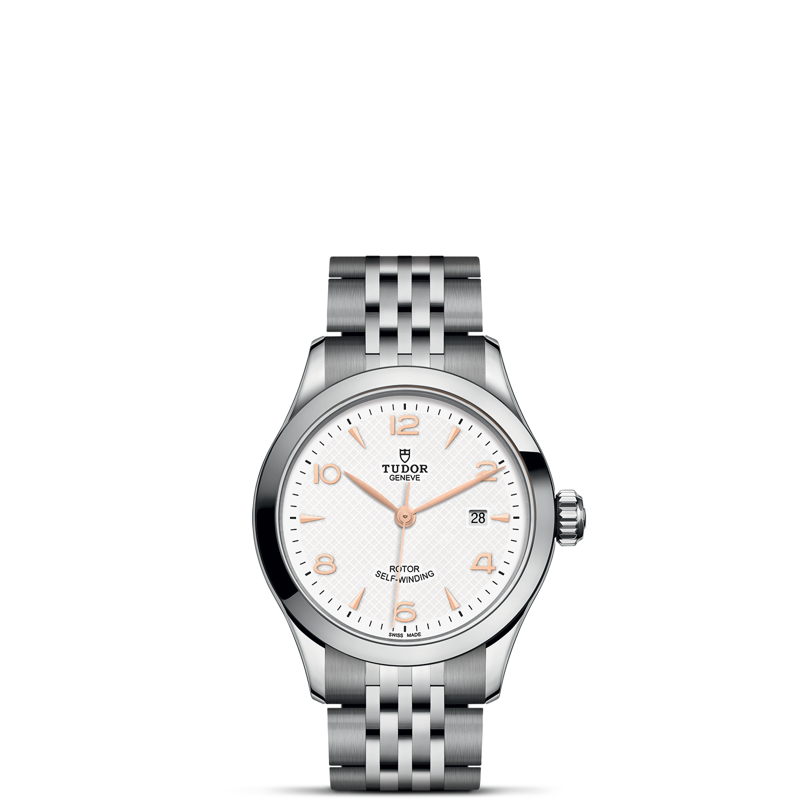 金及钢,中型款 35至39毫米,首节中间链节由精钢或实心玫瑰金制成;其余中间链节由精钢或钢芯及0.2毫米玫瑰金包金制成