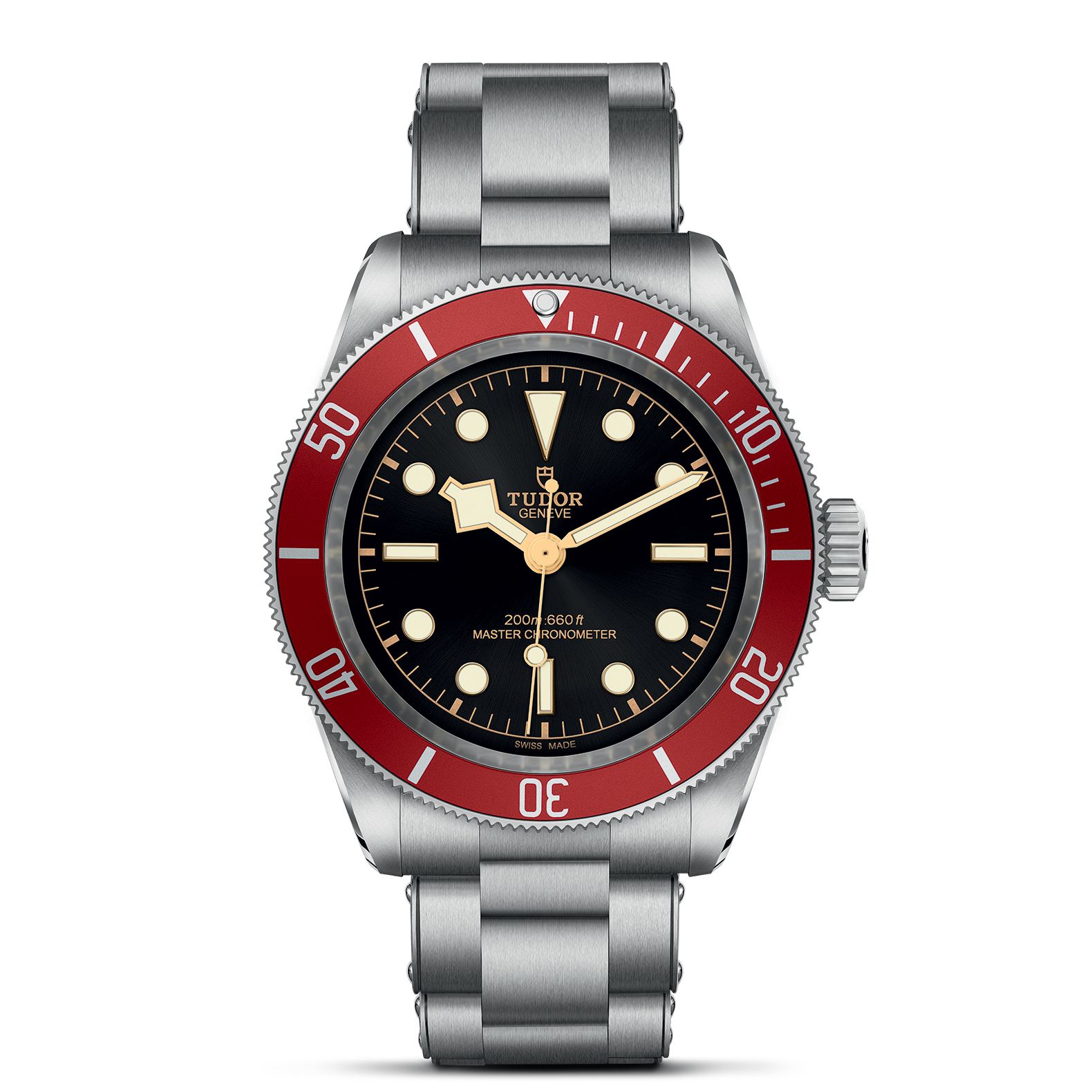 不锈钢三链节表带,经磨光及磨砂处理,配帝舵表“T-fit”带扣