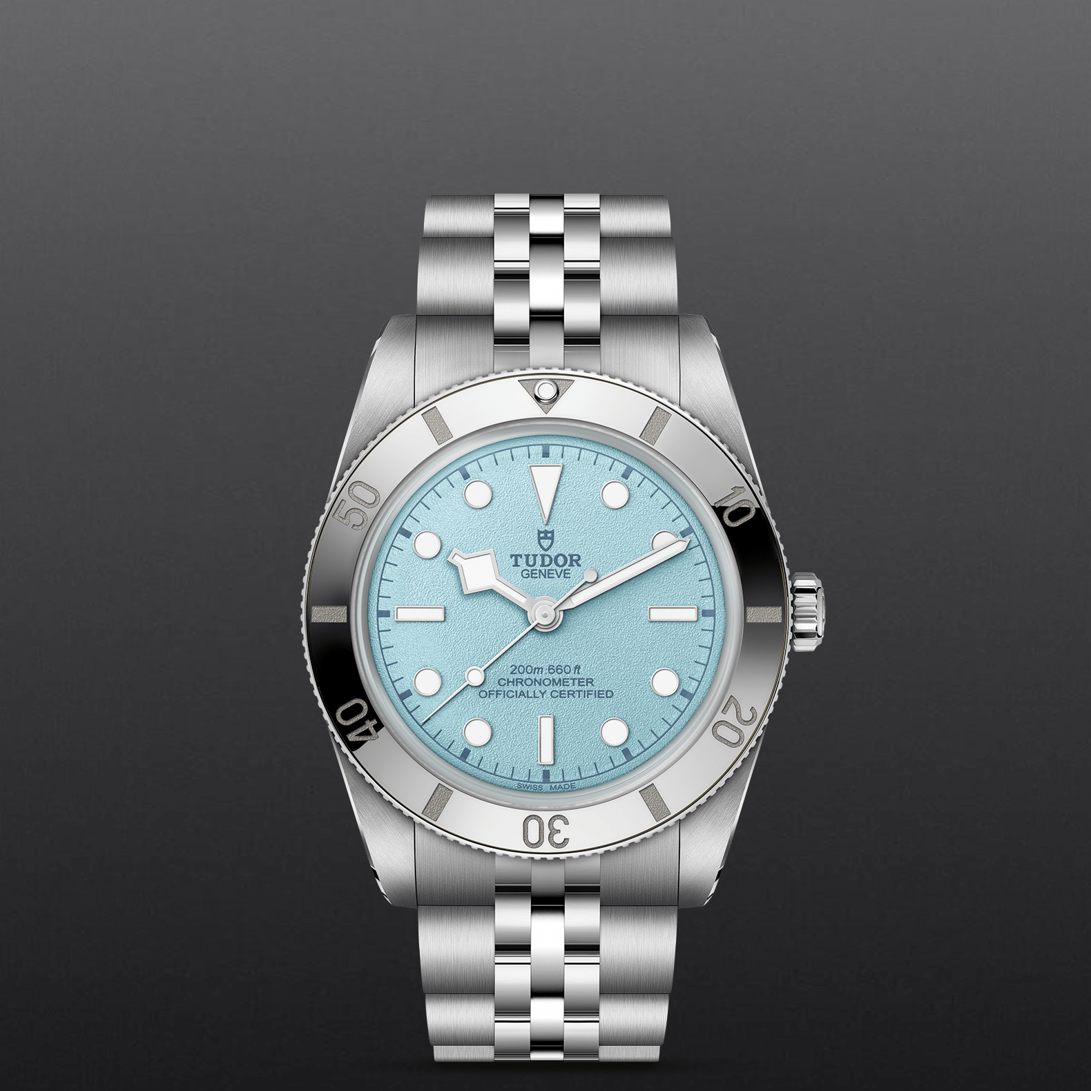 不锈钢五链节表带,经磨光及磨砂处理,配帝舵表“T-fit”带扣