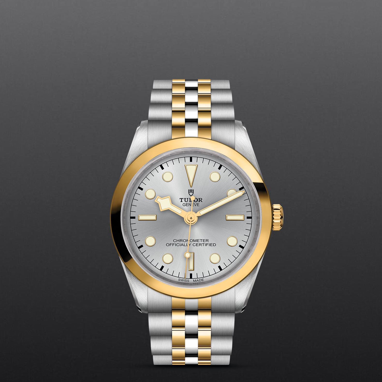 钢,中型款 35至39毫米,不锈钢三链节“铆钉式”表带,经磨光及磨砂处理,配帝舵表“T-fit”带扣