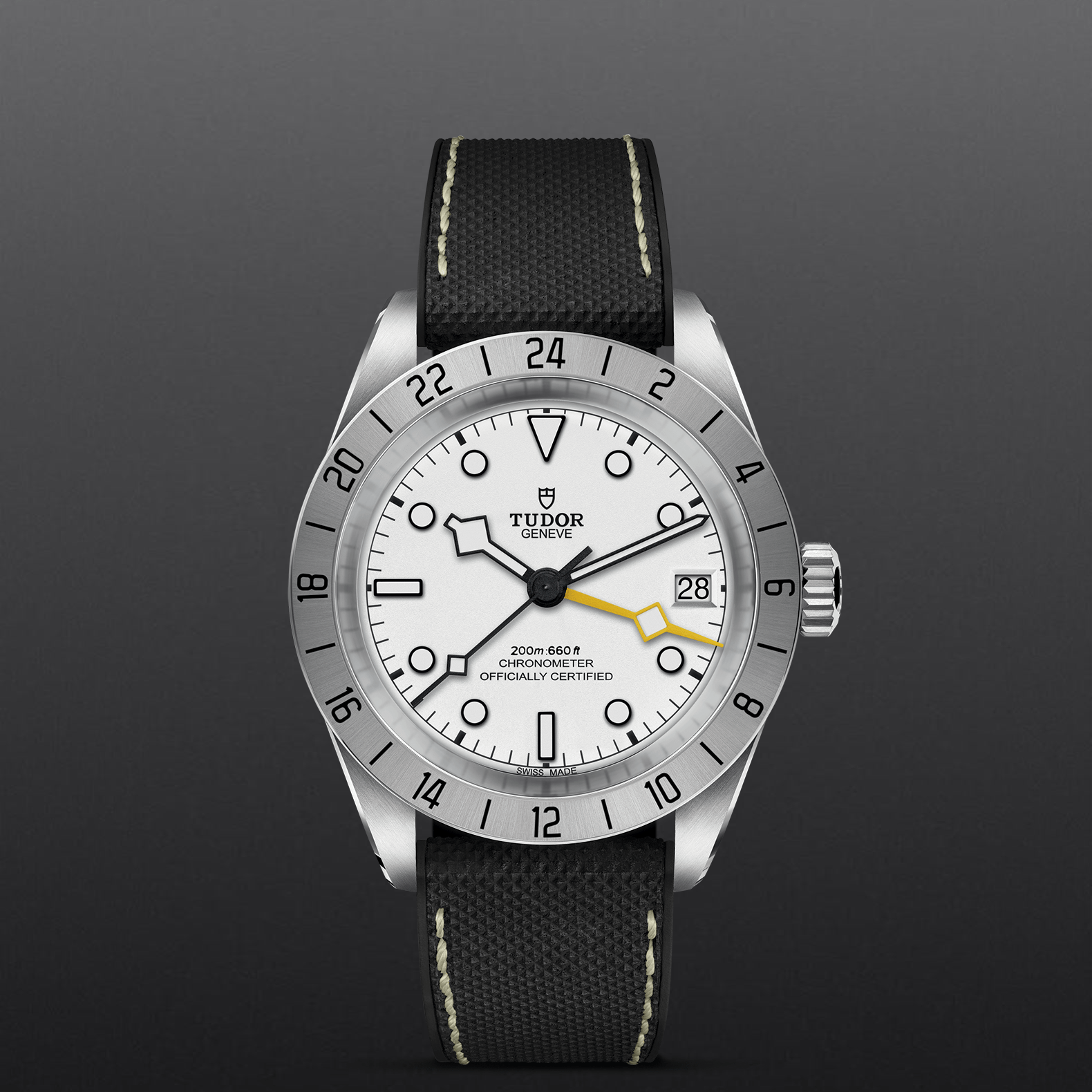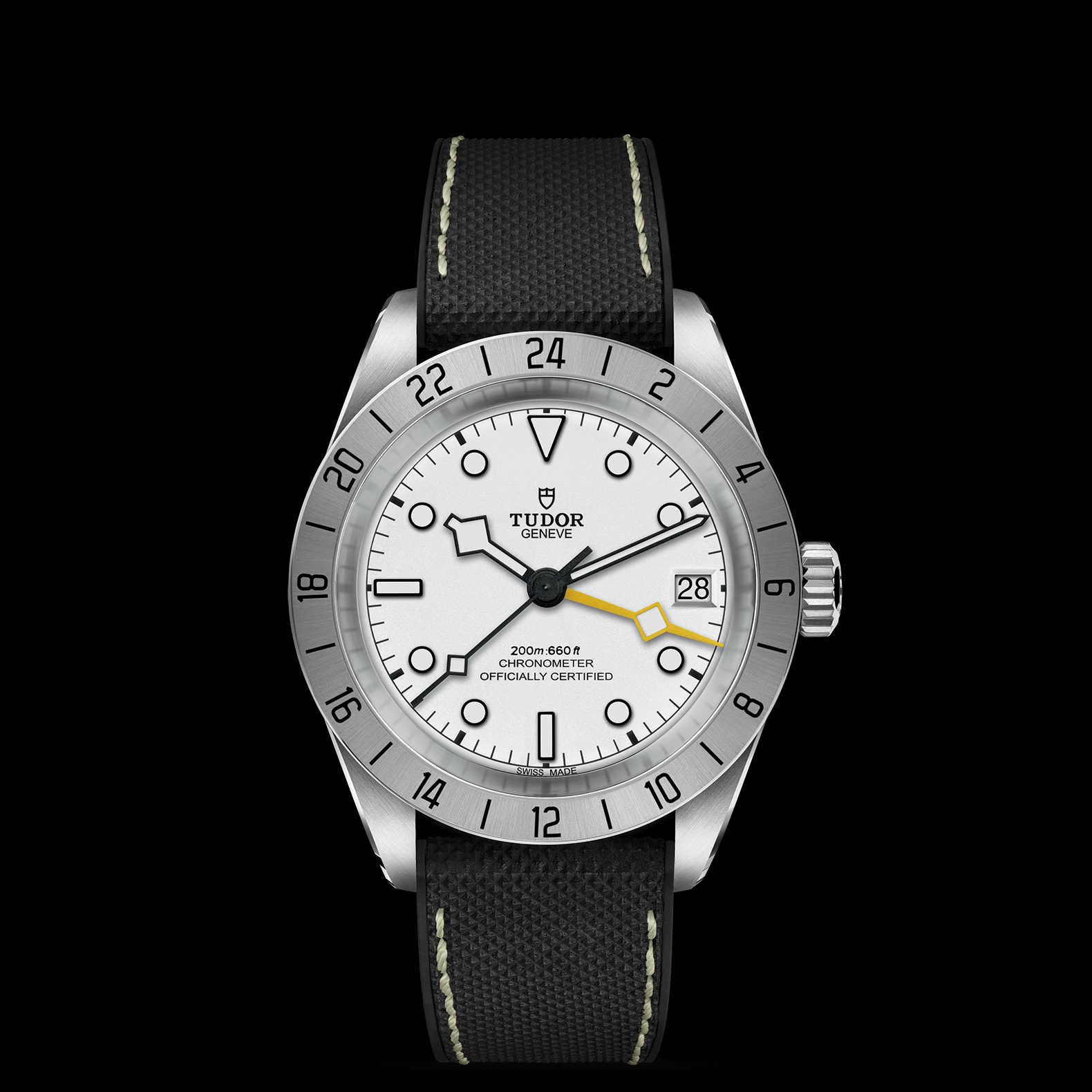 精钢旋入式上链表冠,饰以浮雕帝舵表玫瑰标志