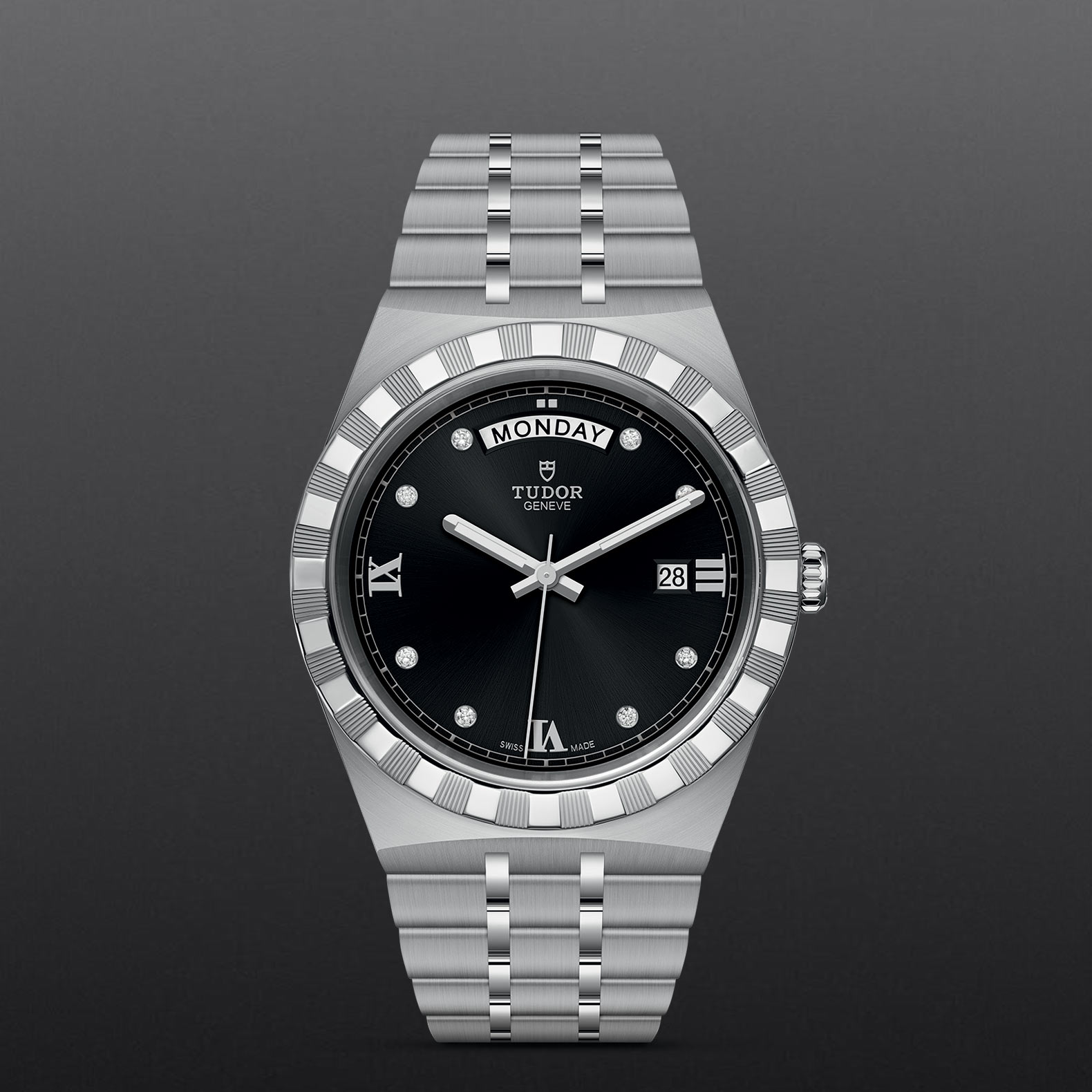 钢,大型款 ≥40毫米,不锈钢五链节表带,经磨光及磨砂处理,配帝舵表“T-fit”带扣
