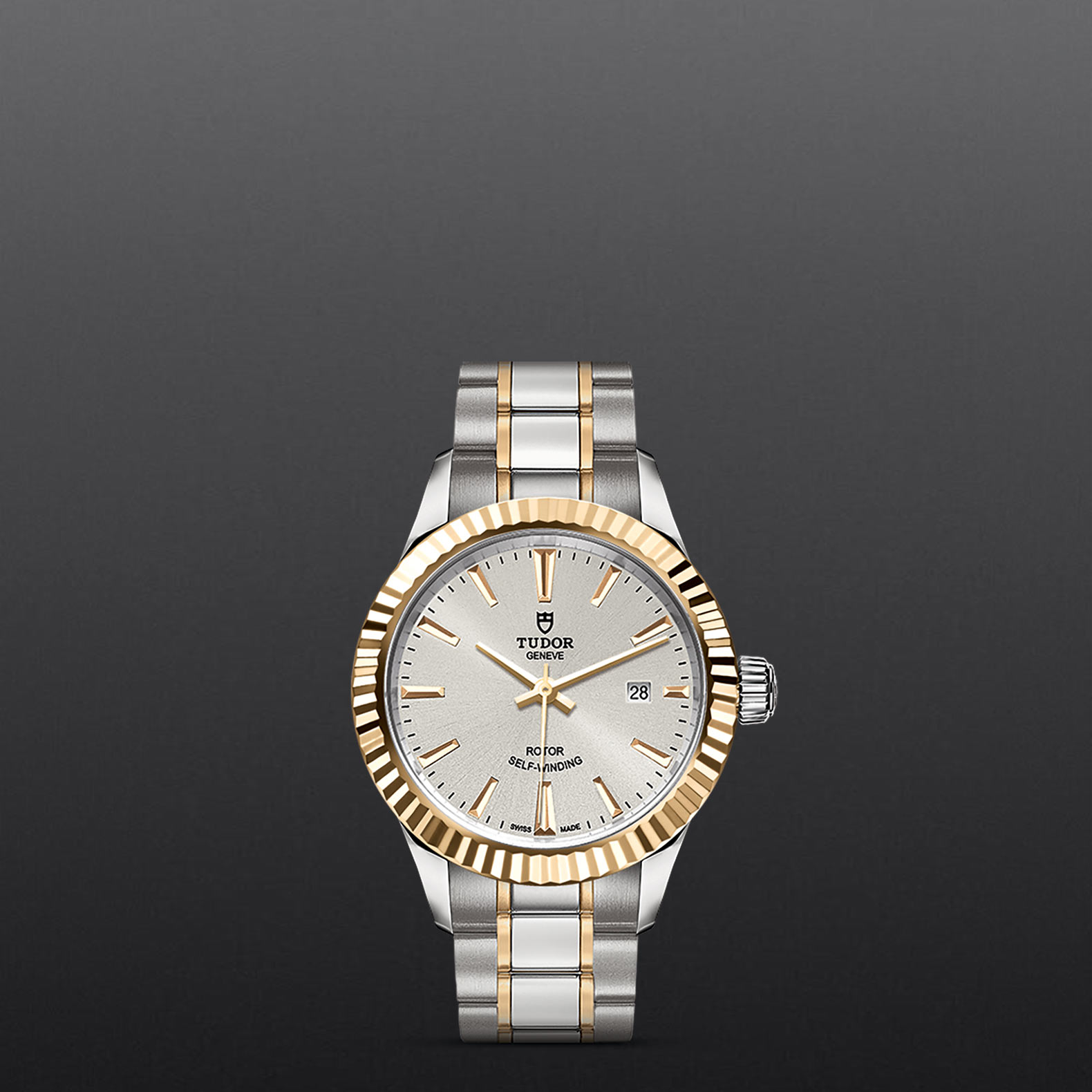 磨光及磨砂钢表壳,直径28毫米