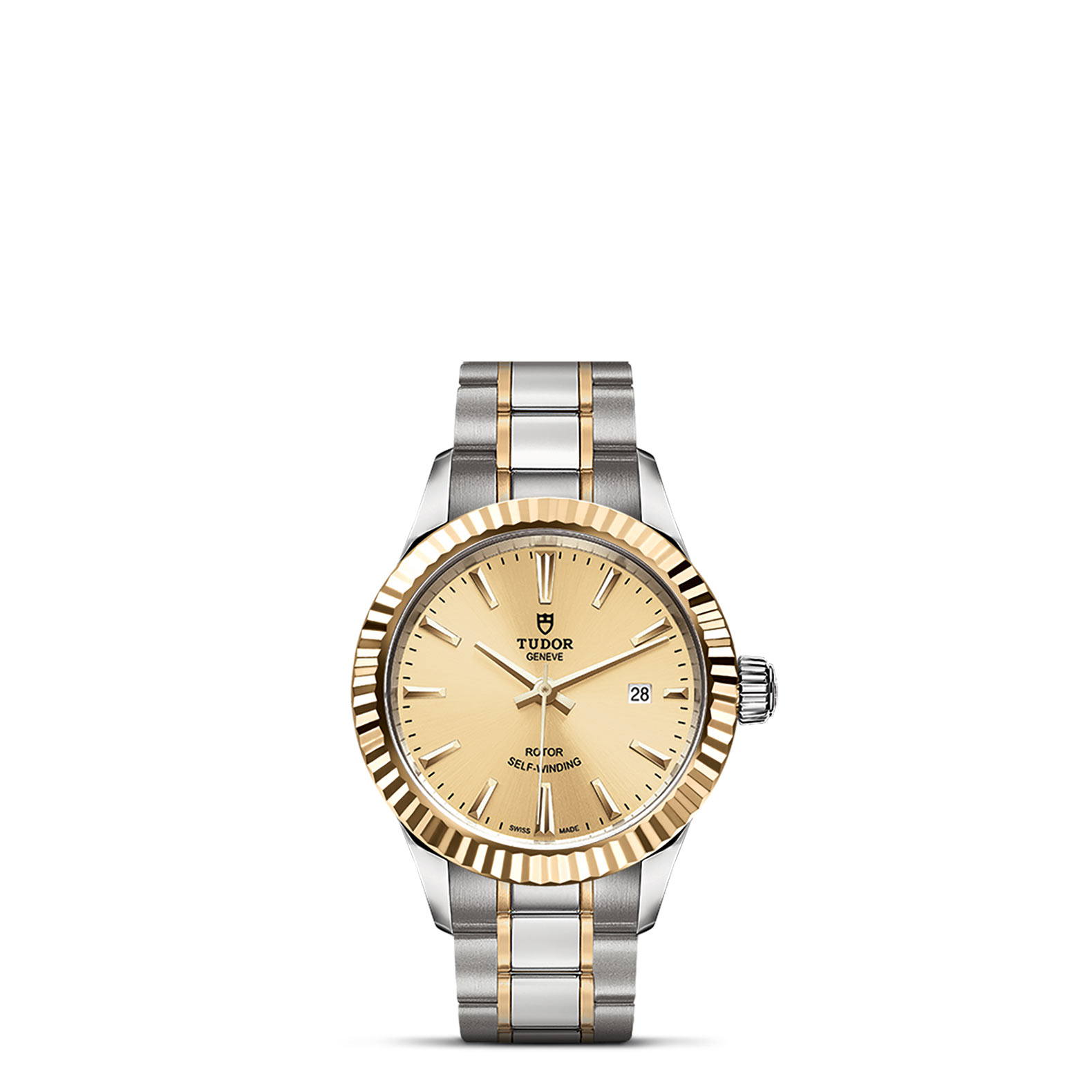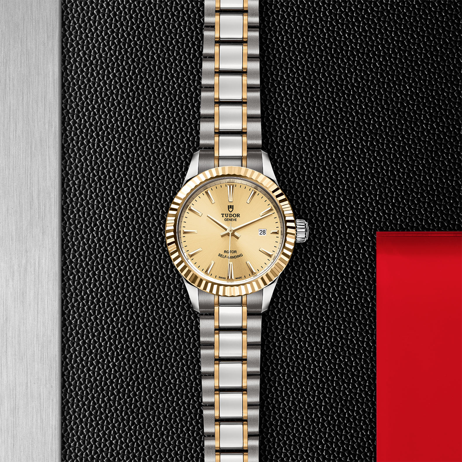 磨光及磨砂钢表壳,直径28毫米