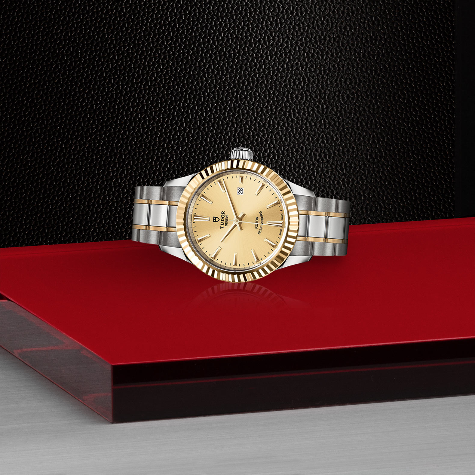 钢,大型款 ≥40毫米,不锈钢五链节表带,经磨光及磨砂处理,配帝舵表“T-fit”带扣