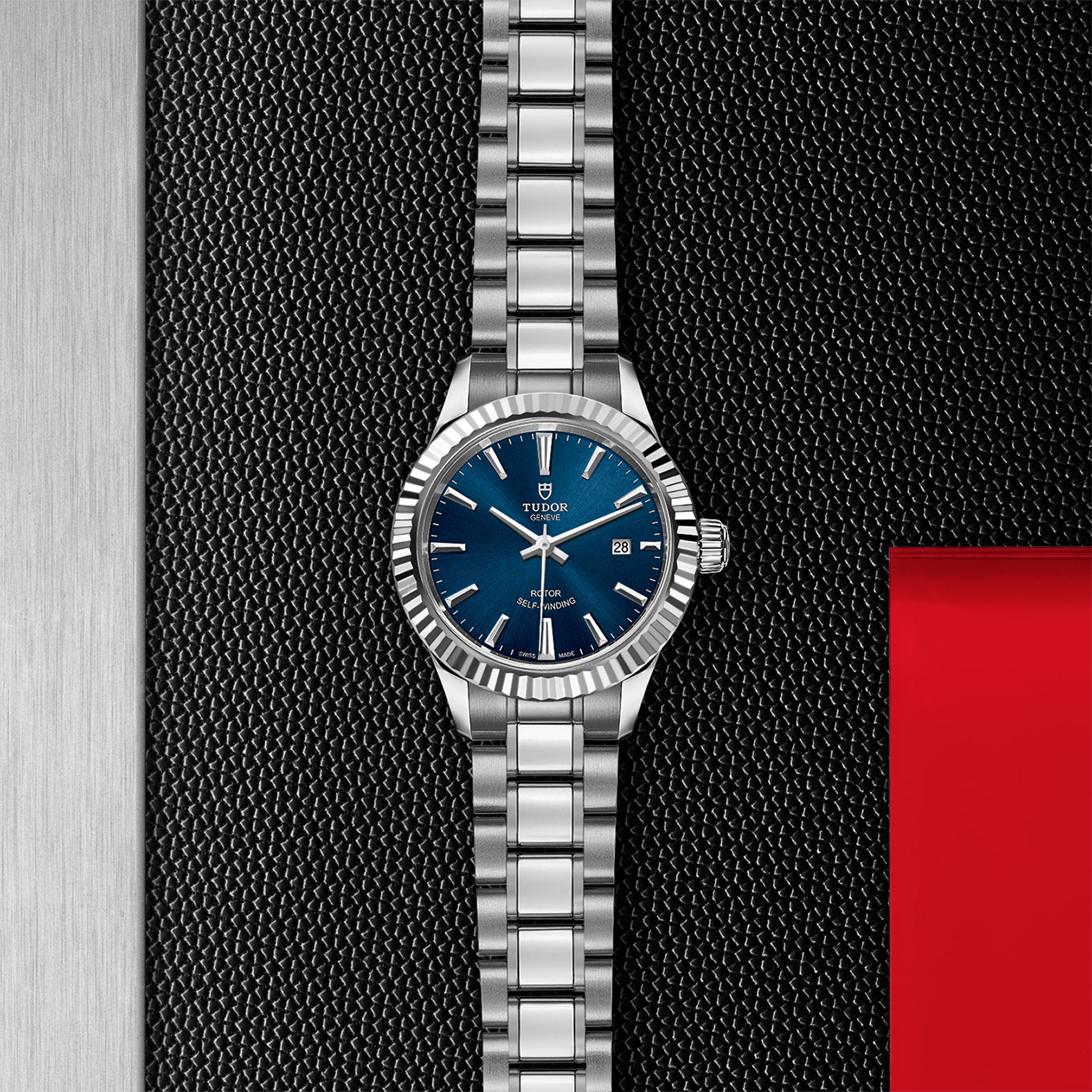 钢,中型款 35至39毫米,铆钉磨光及磨砂钢表带,配帝舵表“T-fit”快速调节带扣
