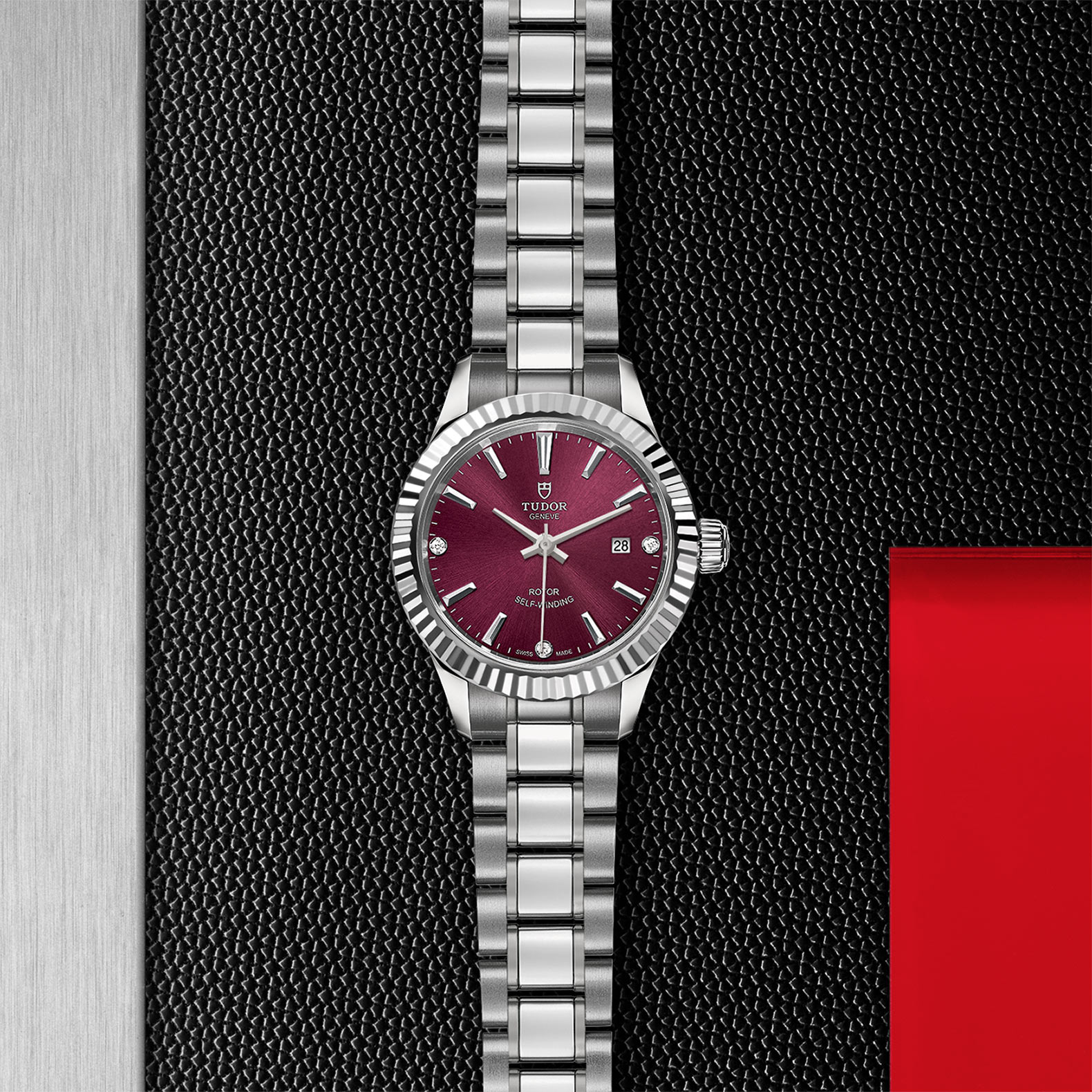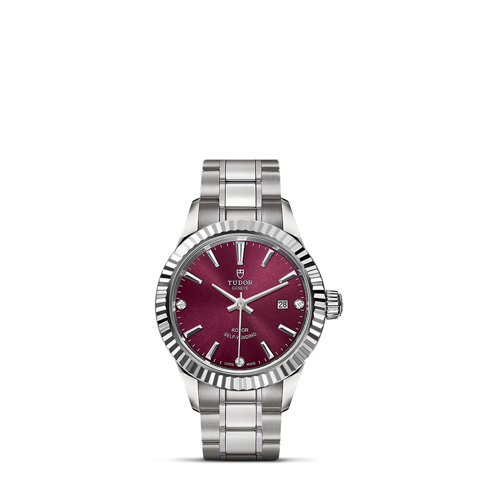 钢,中型款 35至39毫米,不锈钢三链节“铆钉式”表带,经磨光及磨砂处理,配帝舵表“T-fit”带扣