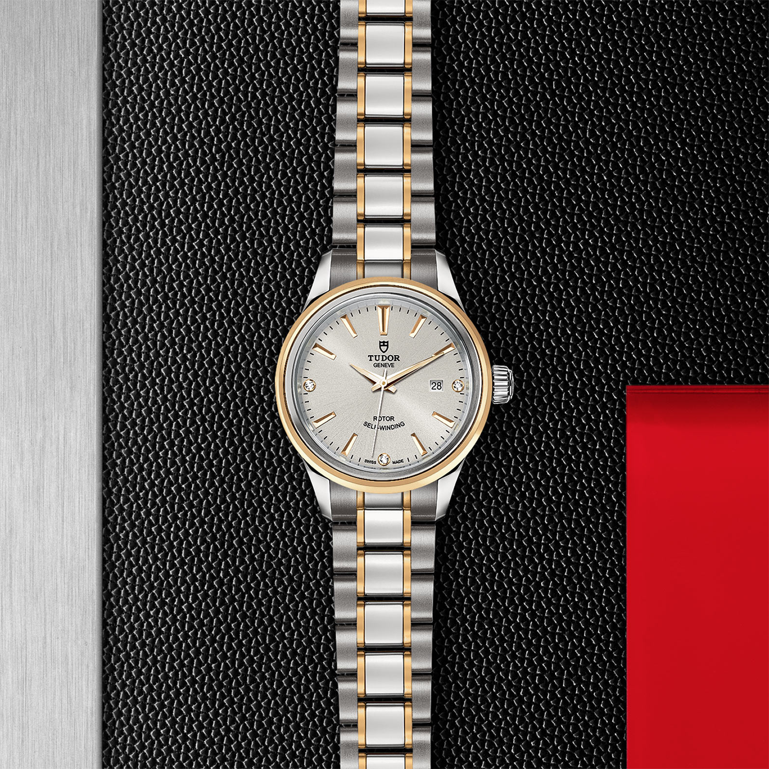 磨光及磨砂钢表壳,直径28毫米