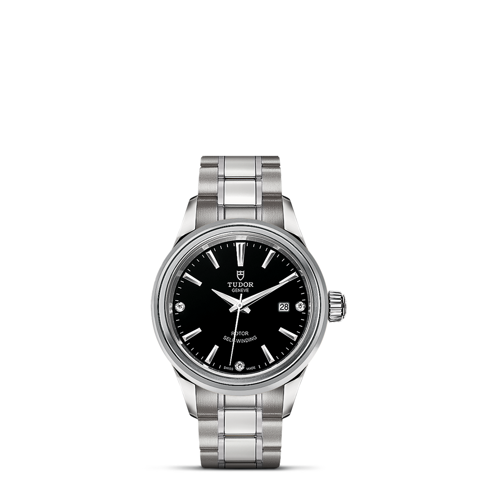 磨光及磨砂钢表壳,直径28毫米