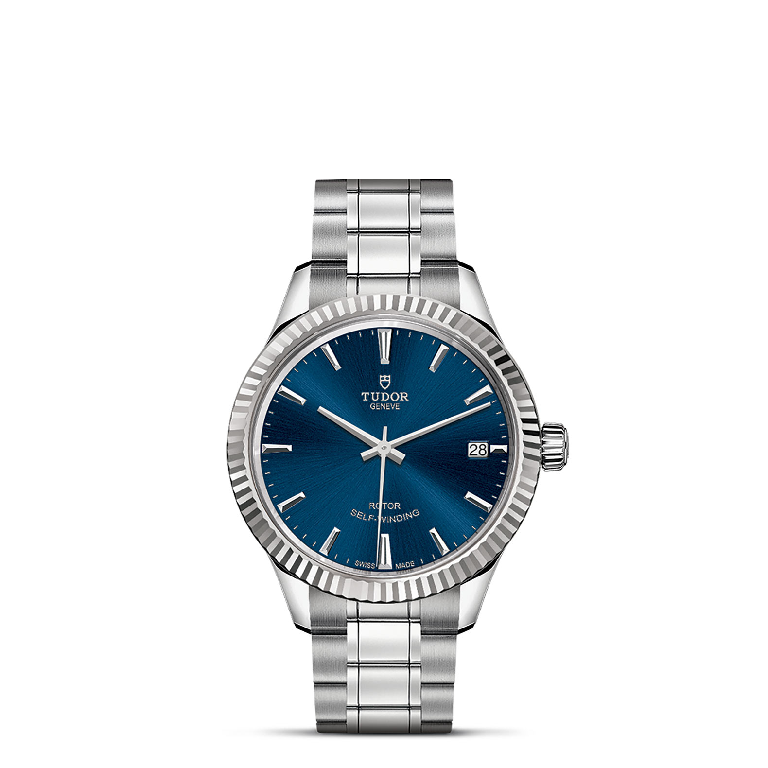 钢,中型款 35至39毫米,不锈钢三链节“铆钉式”表带,经磨光及磨砂处理,配帝舵表“T-fit”带扣