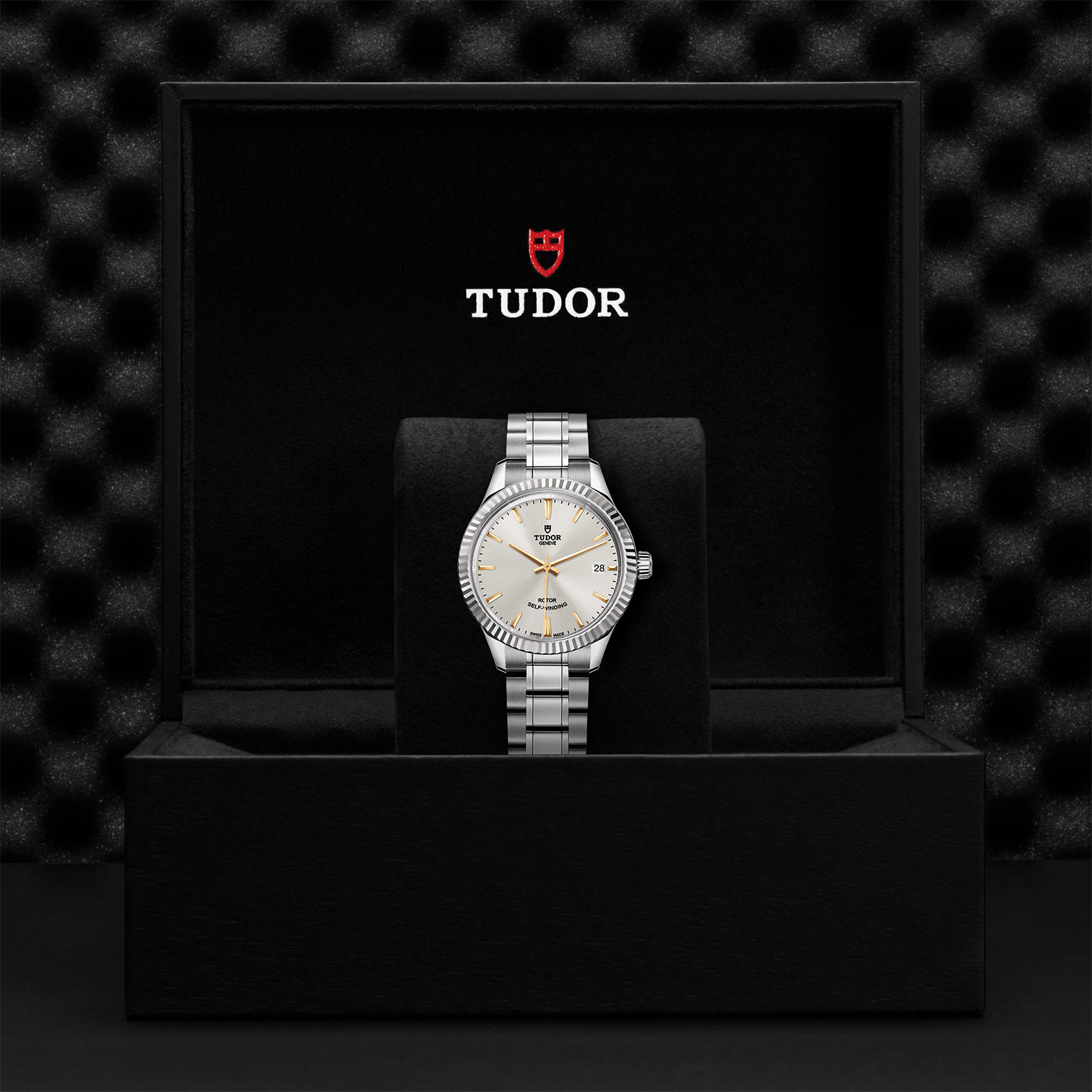 钢,中型款 35至39毫米,铆钉磨光及磨砂钢表带,配帝舵表“T-fit”快速调节带扣