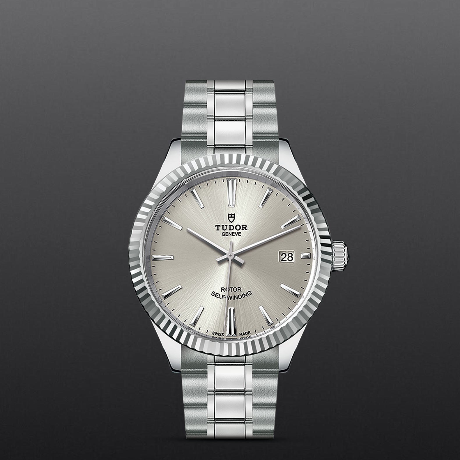 钢,中型款 35至39毫米,不锈钢三链节“铆钉式”表带,经磨光及磨砂处理,配帝舵表“T-fit”带扣