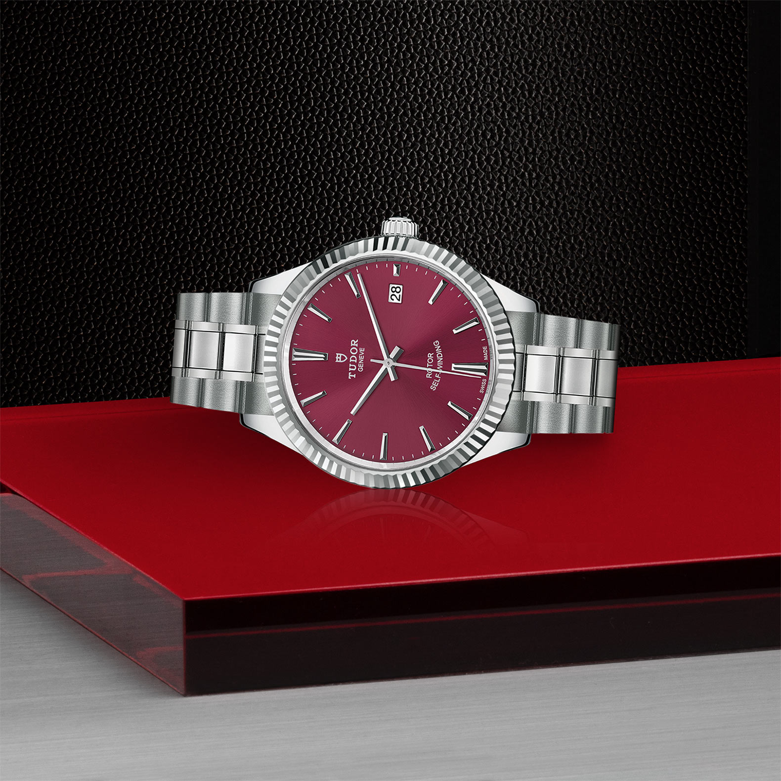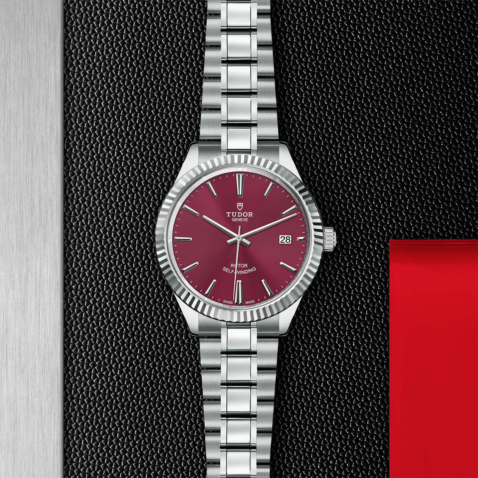 钢,中型款 35至39毫米,不锈钢五链节表带,经磨光及磨砂处理,配帝舵表“T-fit”带扣