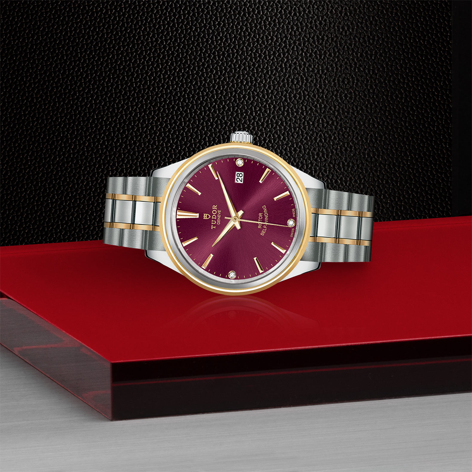 钢,中型款 35至39毫米,不锈钢五链节表带,经磨光及磨砂处理,配帝舵表“T-fit”带扣