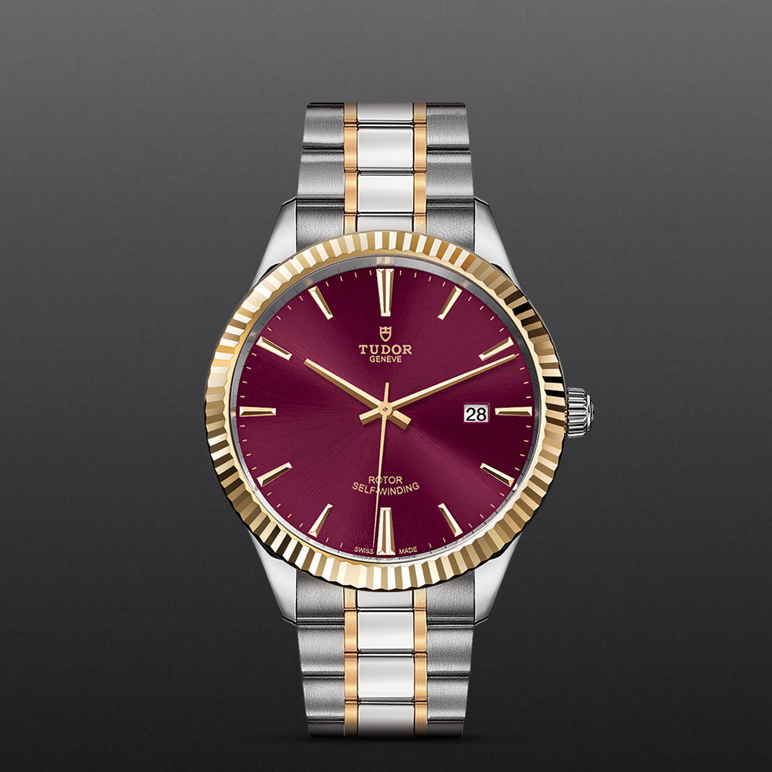 钢,中型款 35至39毫米,不锈钢三链节表带,经磨光及磨砂处理,配帝舵表“T-fit”带扣
