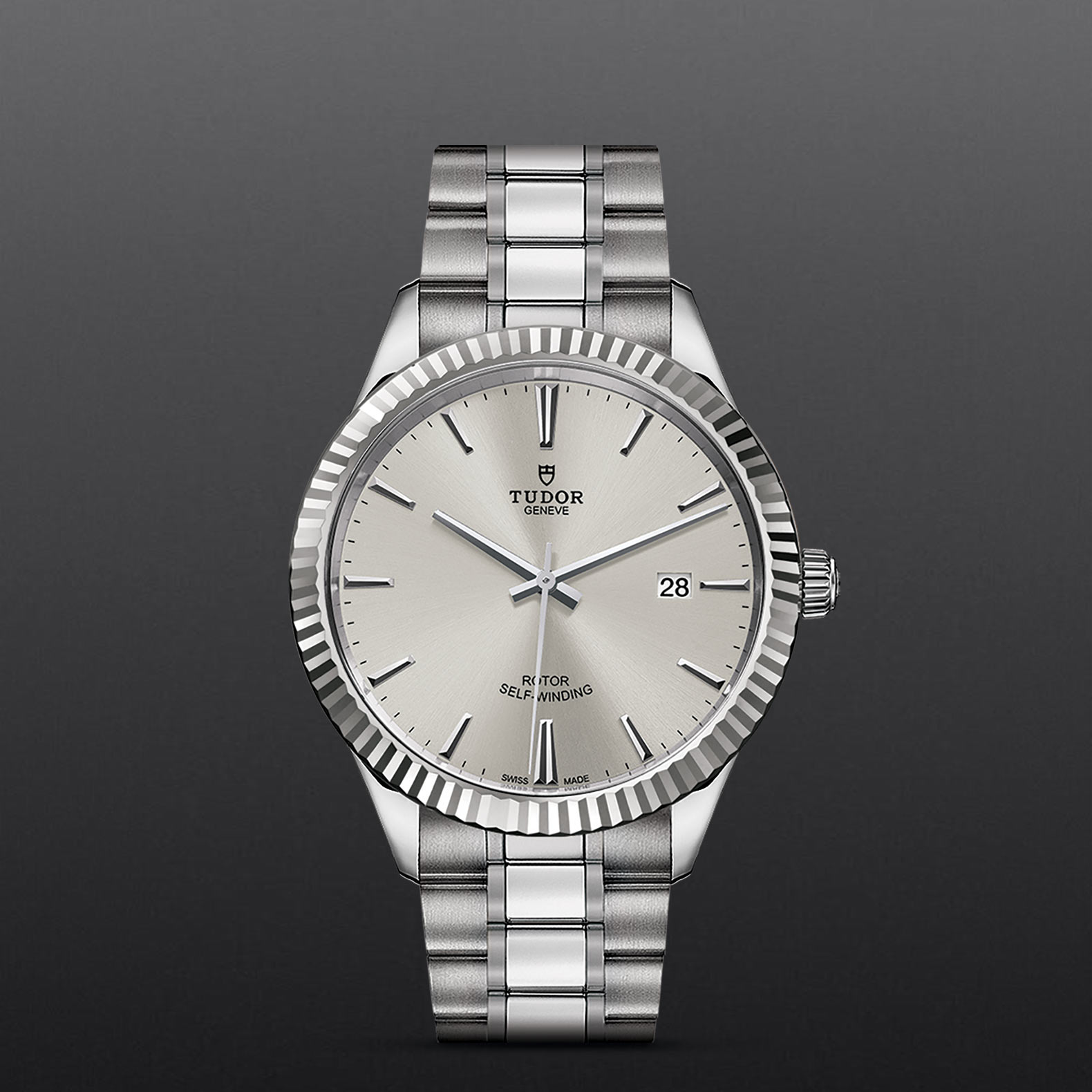钢,大型款 ≥40毫米,不锈钢五链节表带,经磨光及磨砂处理,配帝舵表“T-fit”带扣