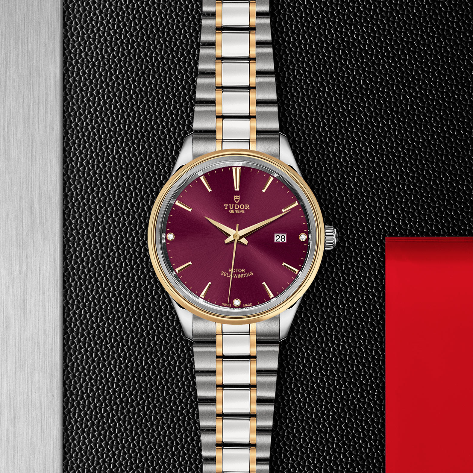 酒红色,镶3颗钻石