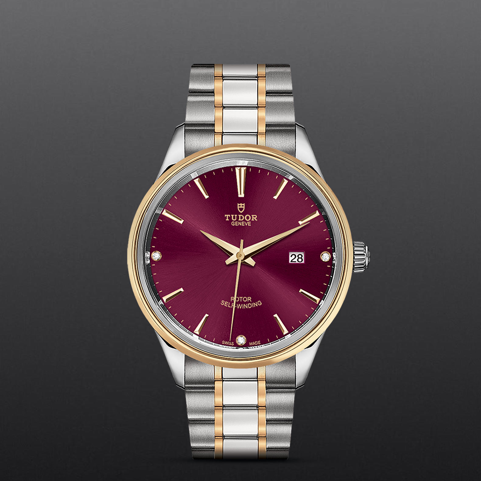 金及钢,中型款 35至39毫米,首节中间链节由精钢或实心玫瑰金制成;其余中间链节由精钢或钢芯及0.2毫米玫瑰金包金制成