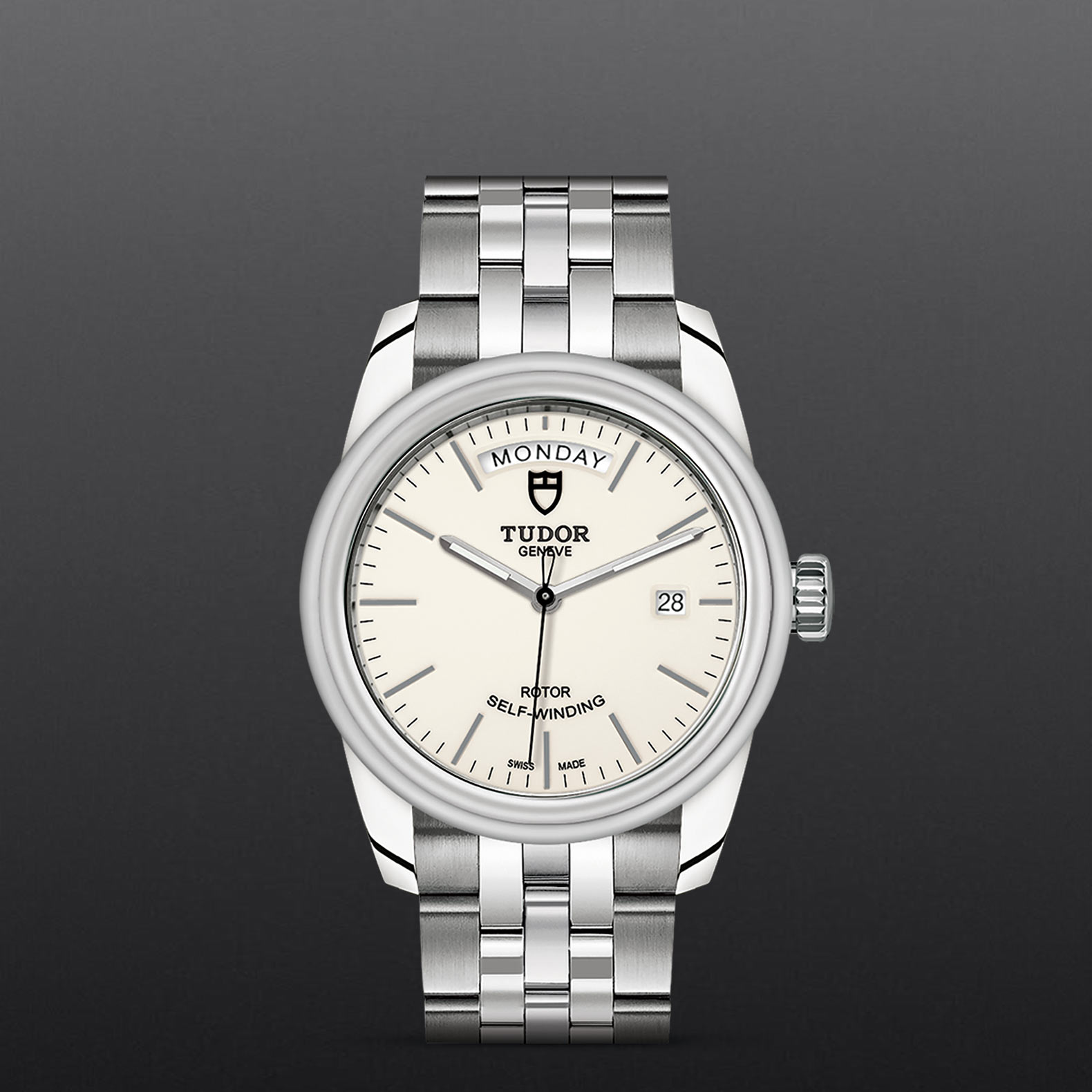 钢,中型款 35至39毫米,316L钢一体式表带,5排链节,外侧及中间链节经磨砂处理,间隔链节精细磨光,配摺扣及保险扣