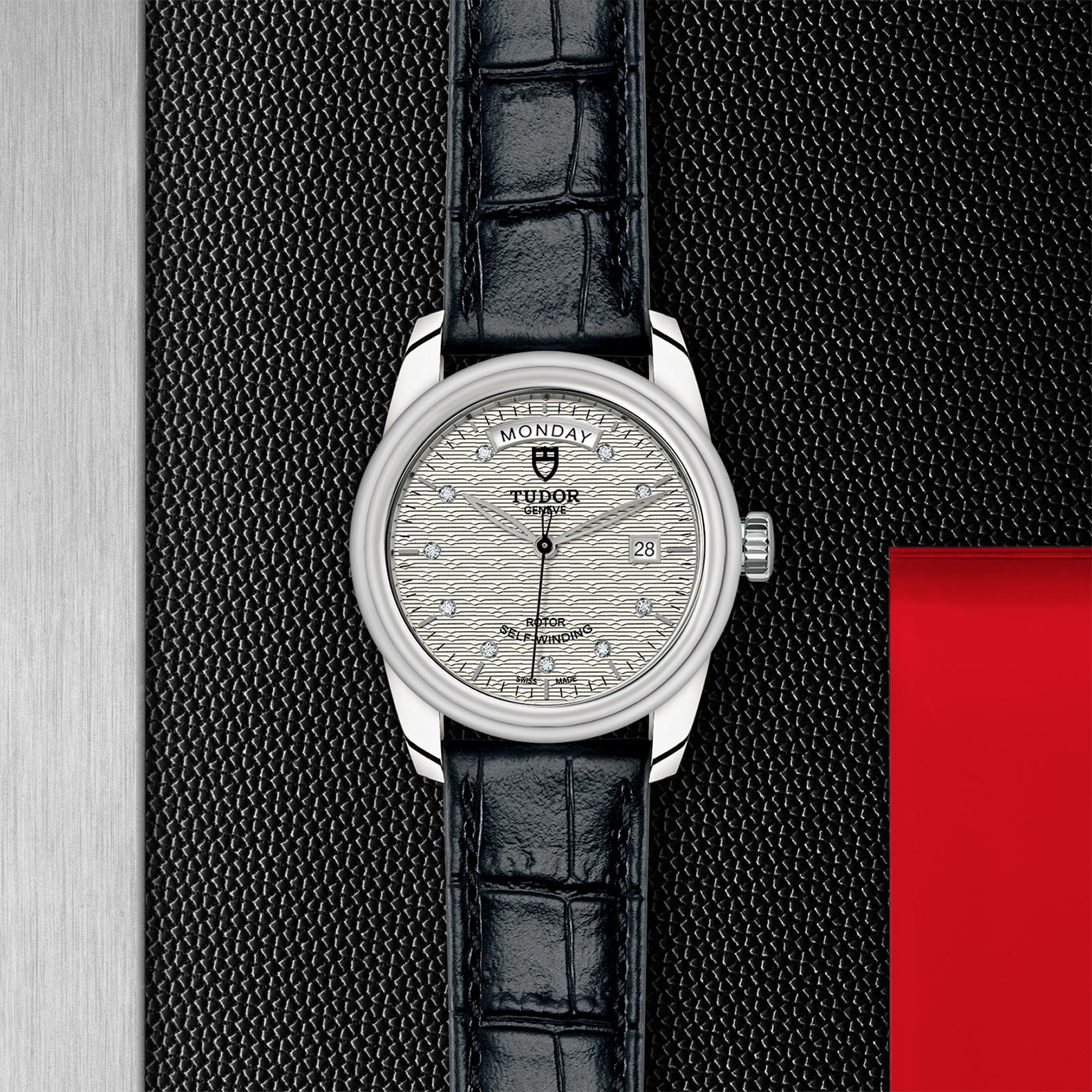 精钢旋入式上链錶冠,饰以帝舵表标志