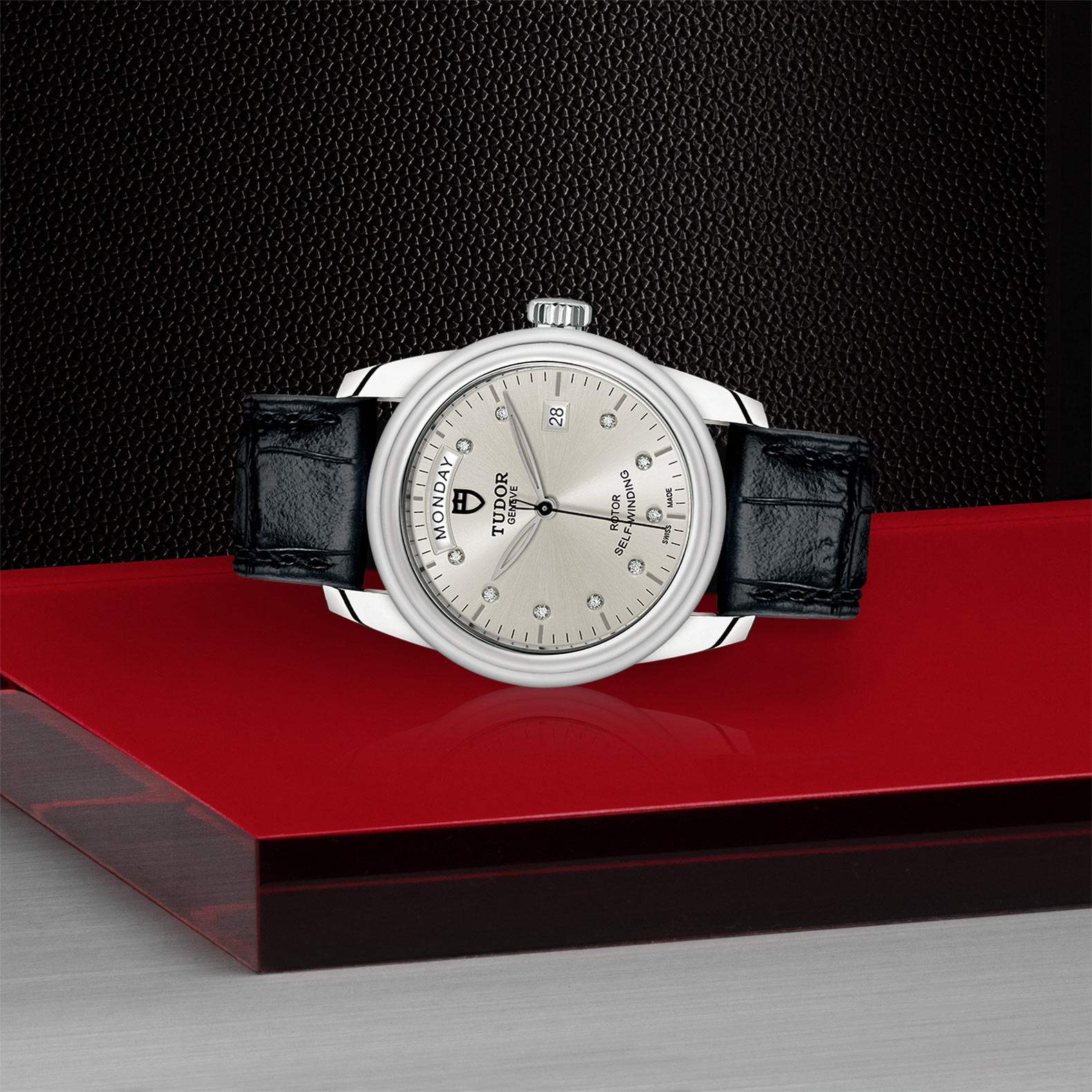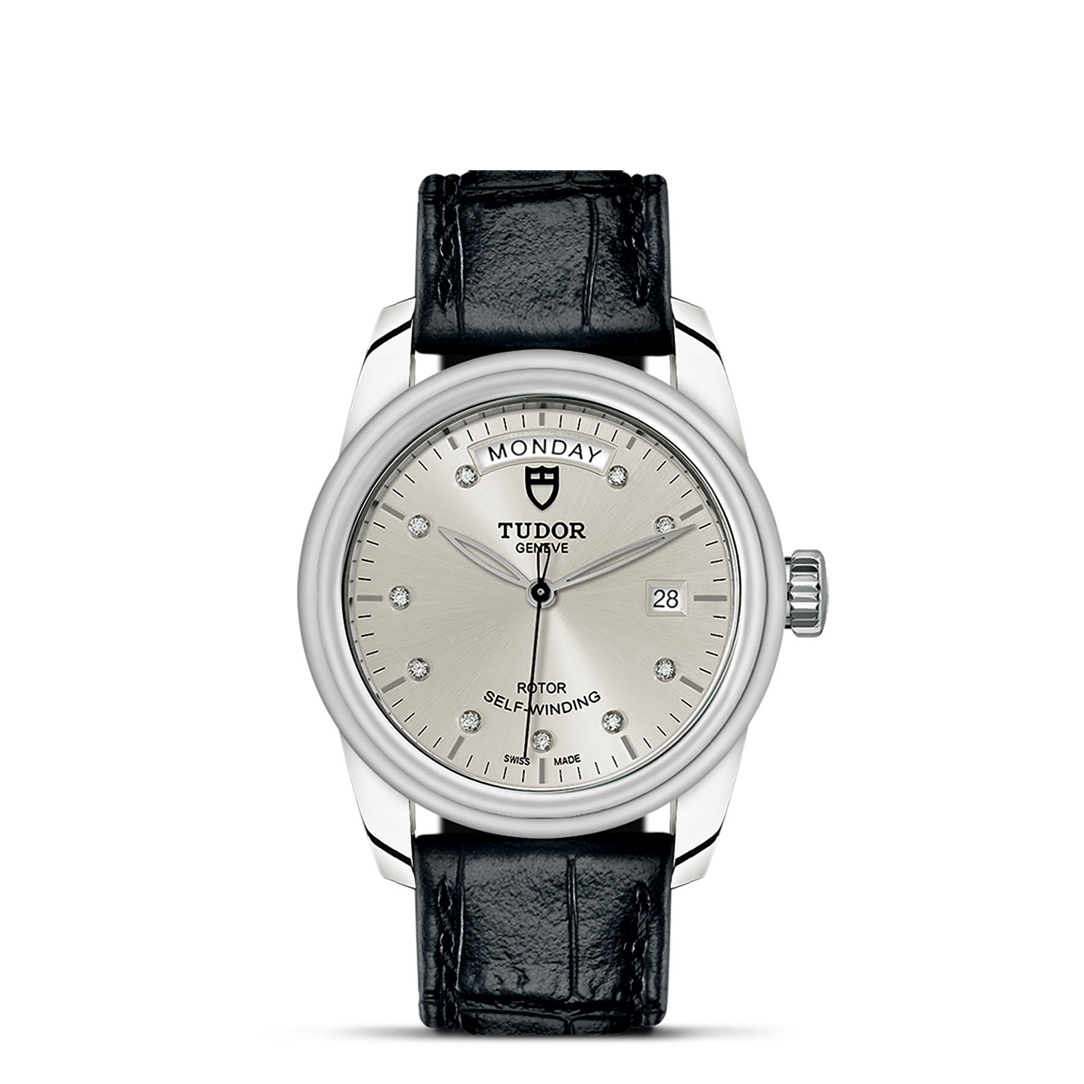 亮黑色皮表带,配摺扣