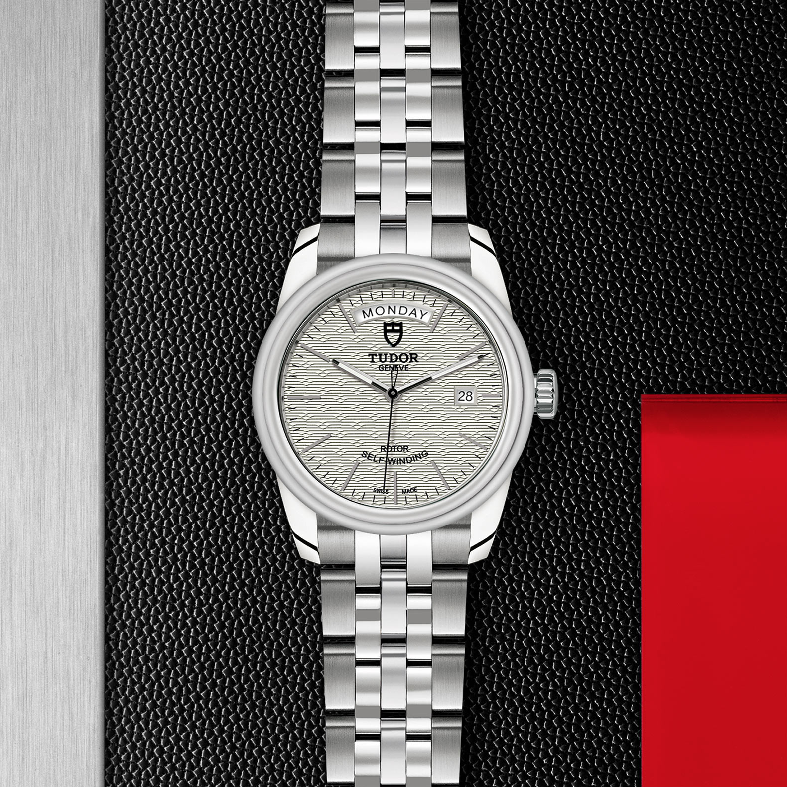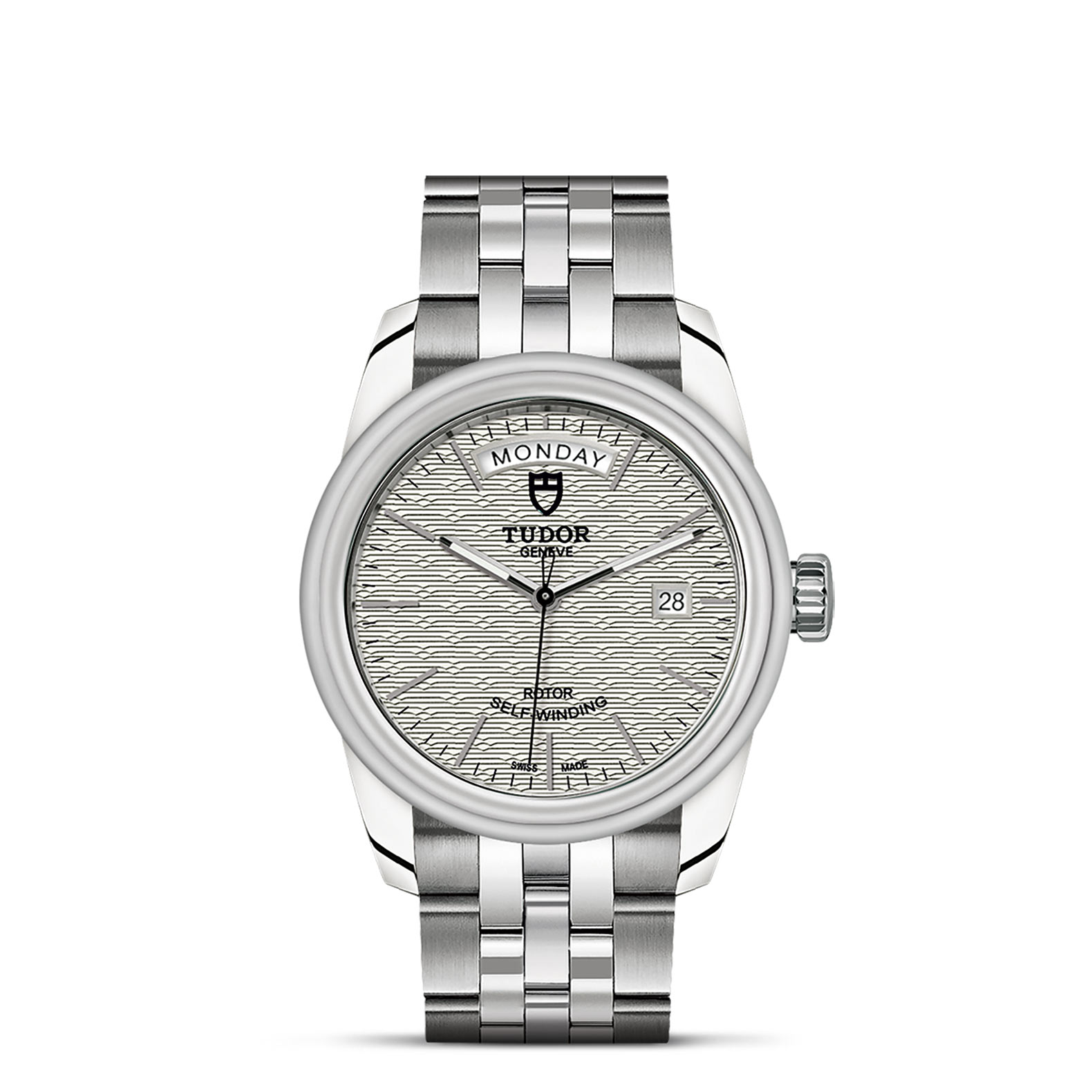 钢,中型款 35至39毫米,316L钢一体式表带,5排链节,外侧及中间链节经磨砂处理,间隔链节精细磨光,配摺扣及保险扣