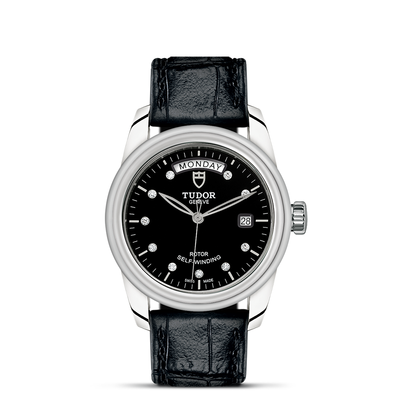 精钢旋入式上链錶冠,饰以帝舵表标志