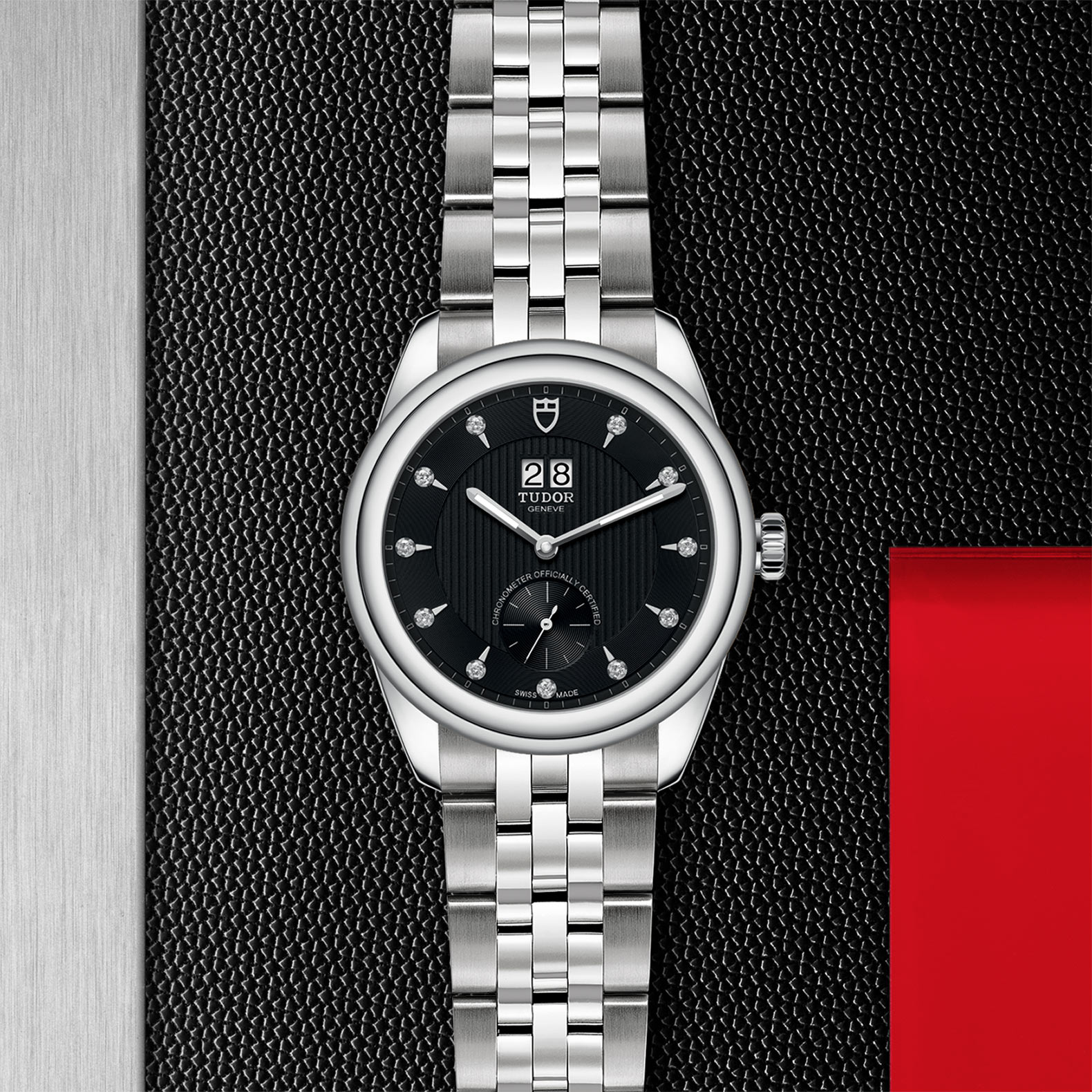 钢,大型款 ≥40毫米,不锈钢五链节表带,磨光及磨砂处理,配帝舵表“T-fit”快速调节带扣