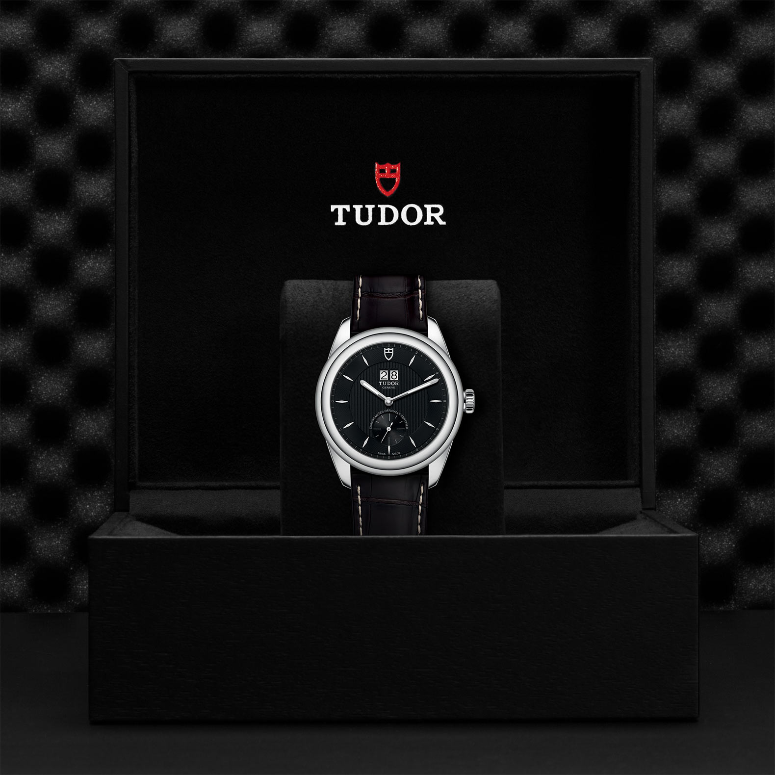 精钢旋入式上链錶冠,饰以帝舵表标志