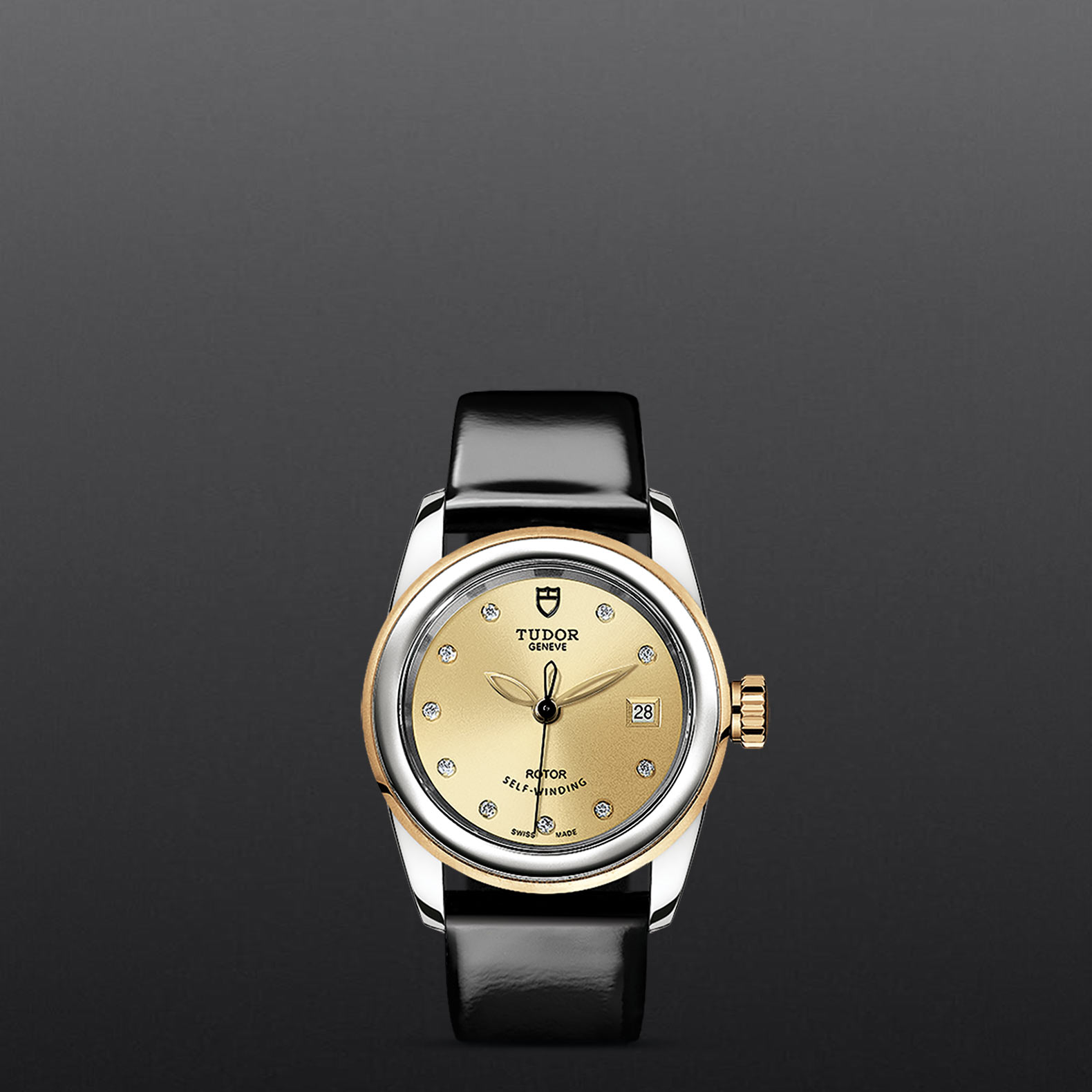 黑色漆皮表带,配摺扣