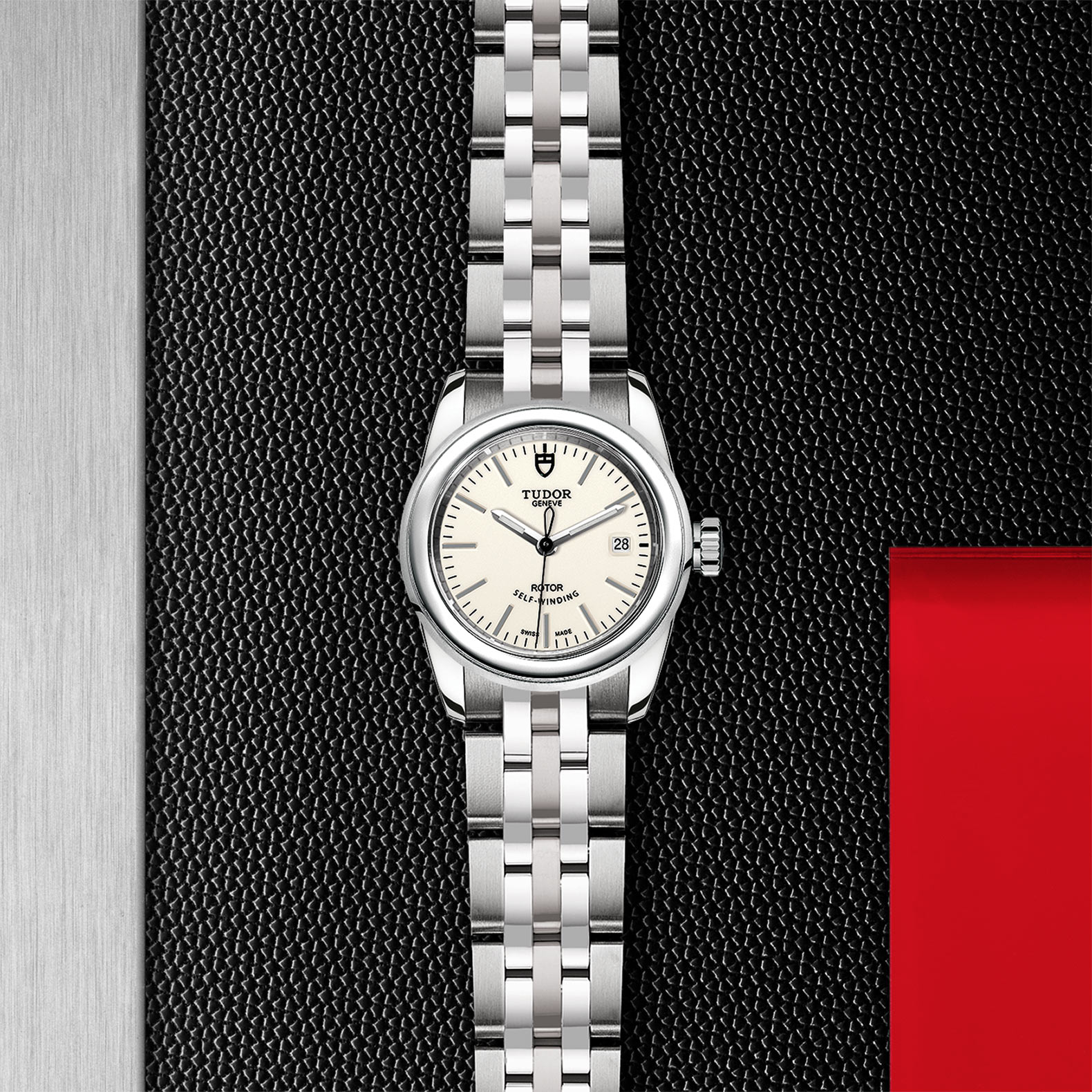 钢,中型款 35至39毫米,不锈钢五链节表带,经磨光及磨砂处理,配帝舵表“T-fit”带扣