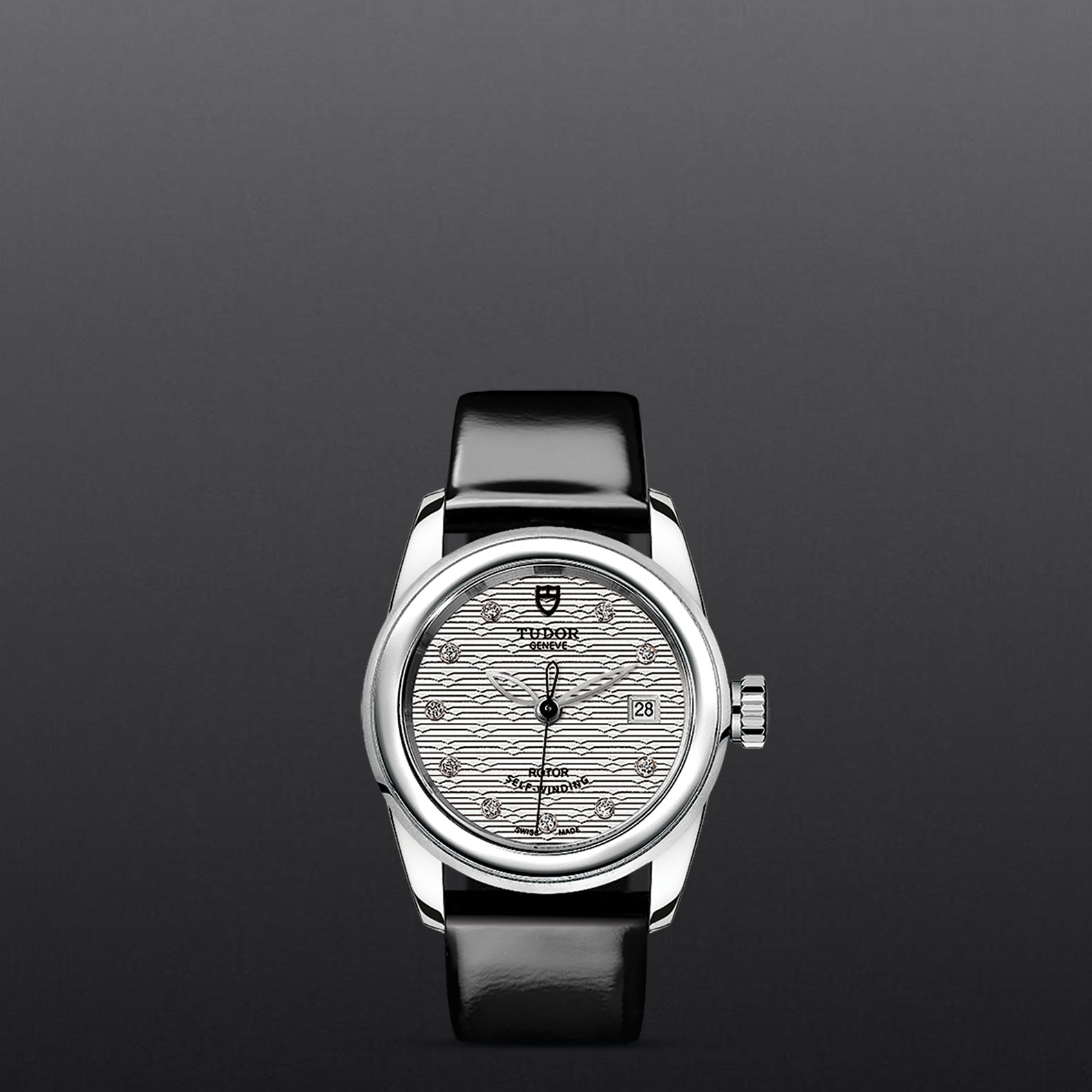黑色漆皮表带,配摺扣