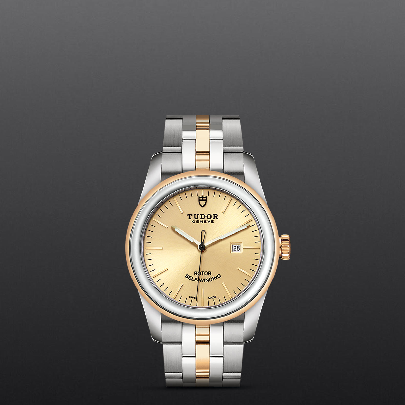 位于6点钟及12点钟位置的首节中间链节由实心黄金制成;其余中间链节由精钢或钢芯及0.2毫米黄金包金制成;摺扣及保险扣