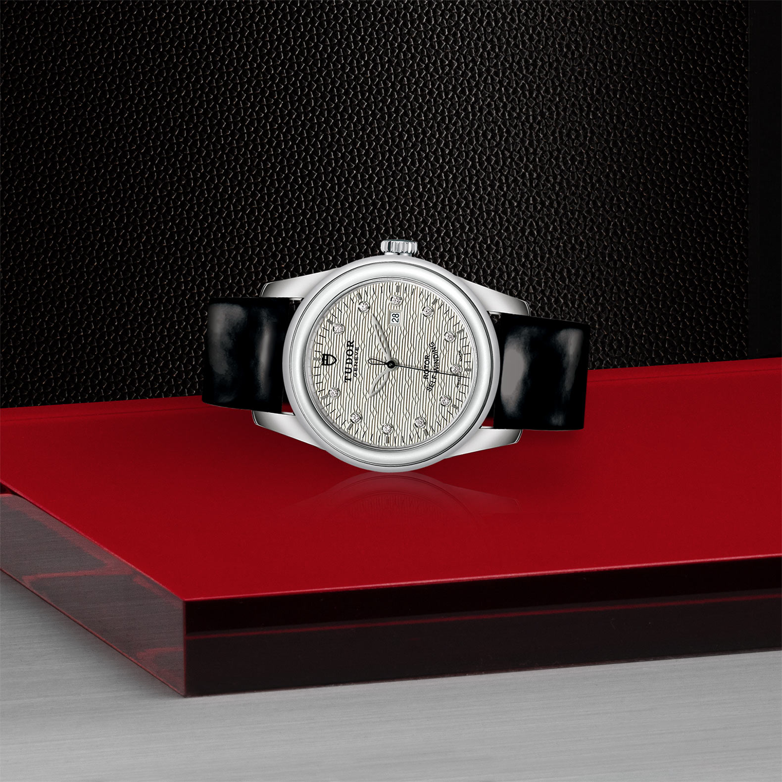 黑色漆皮表带,配摺扣