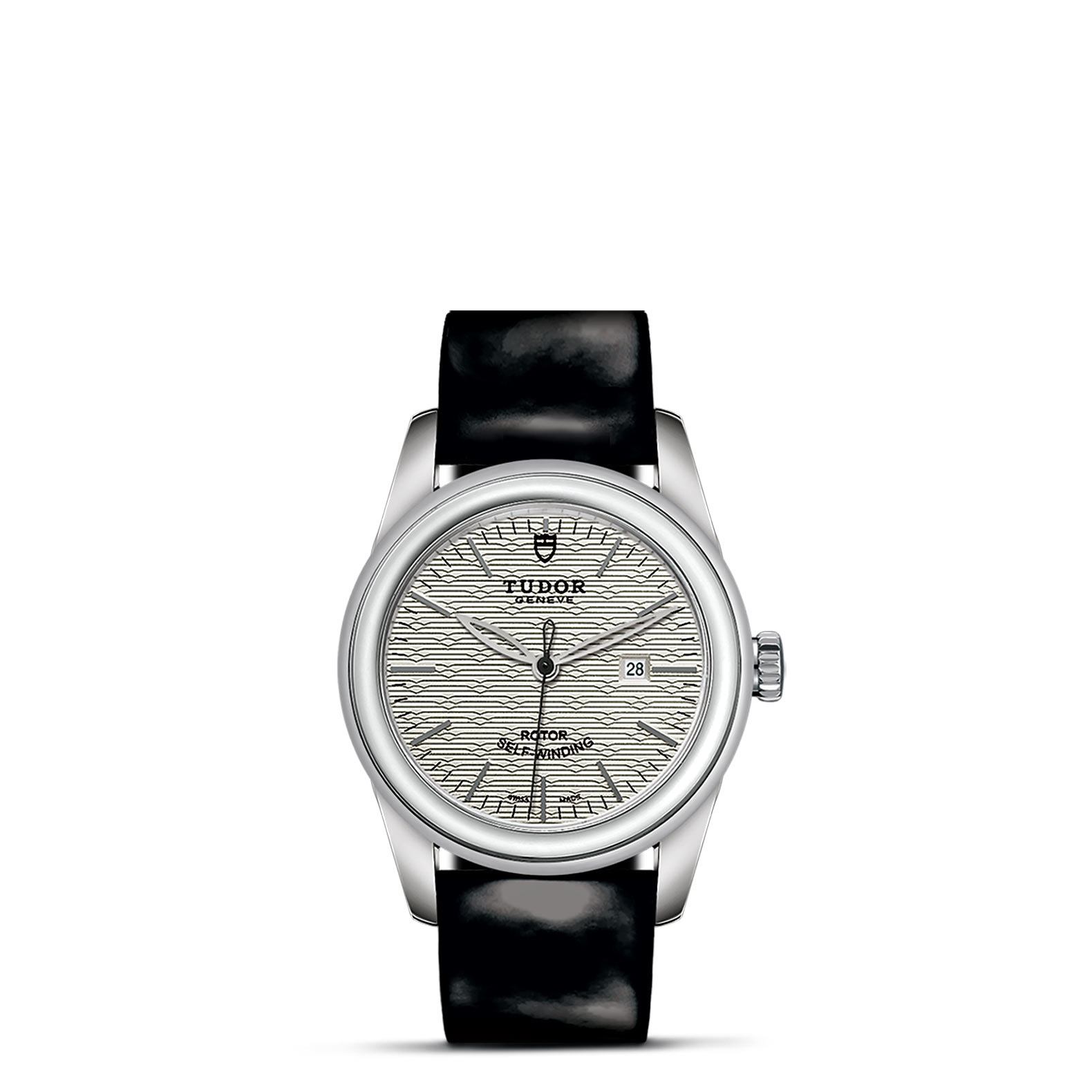 钢,小型款≤34毫米,316L钢一体式表带,5排链节,外侧及中间链节经磨砂处理,间隔链节精细磨光,配摺扣及保险扣