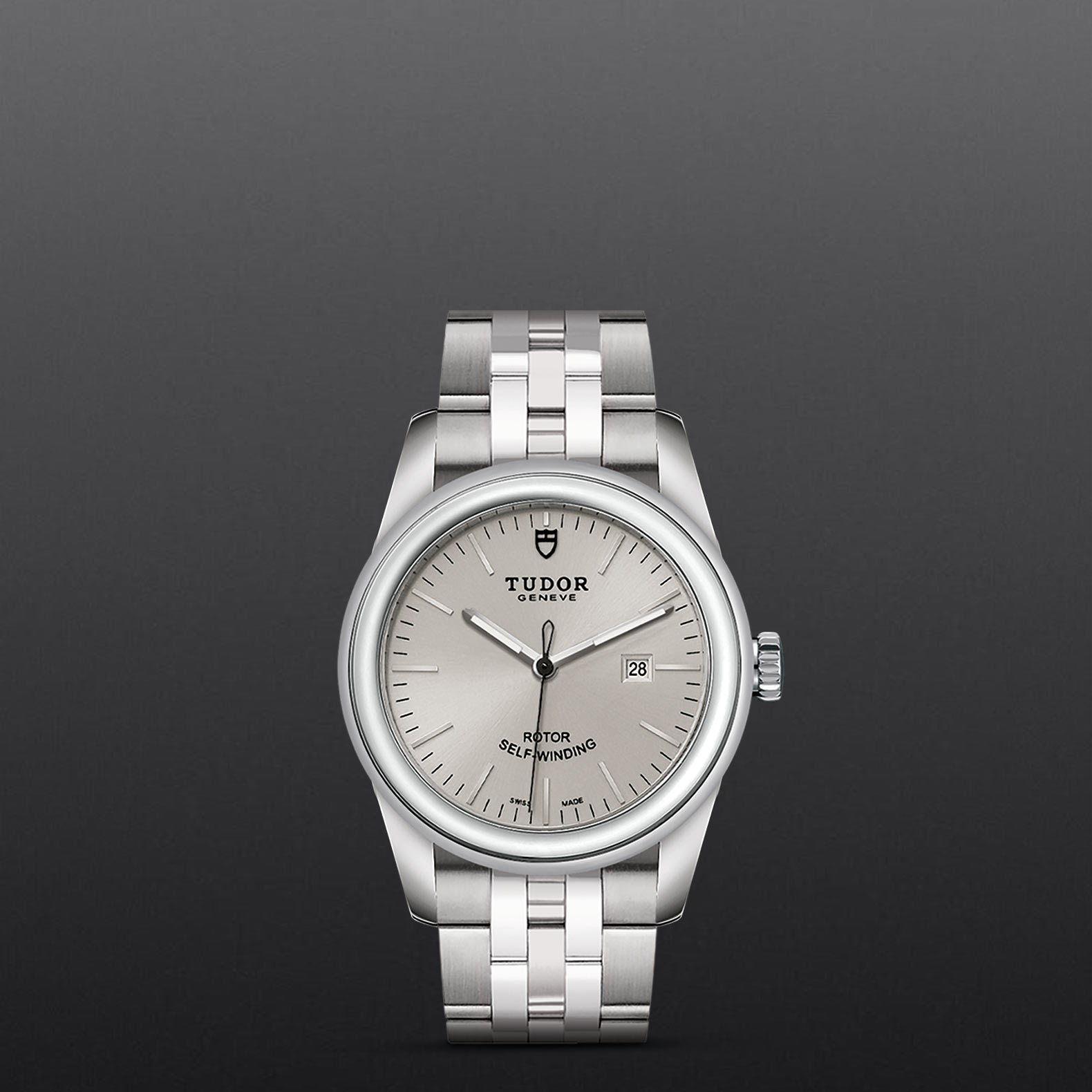 精钢旋入式上链錶冠,饰以帝舵表标志
