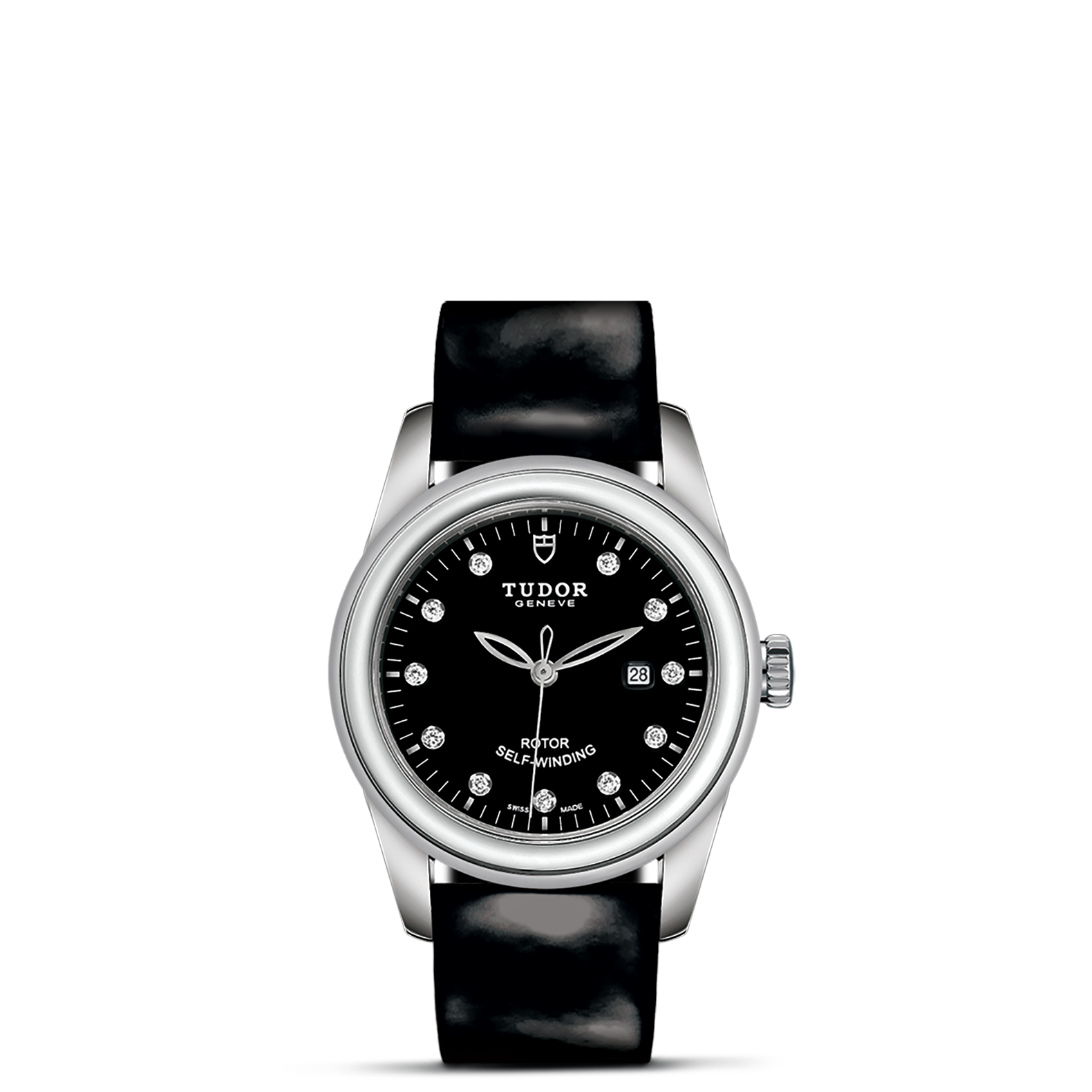 黑色漆皮表带,配摺扣