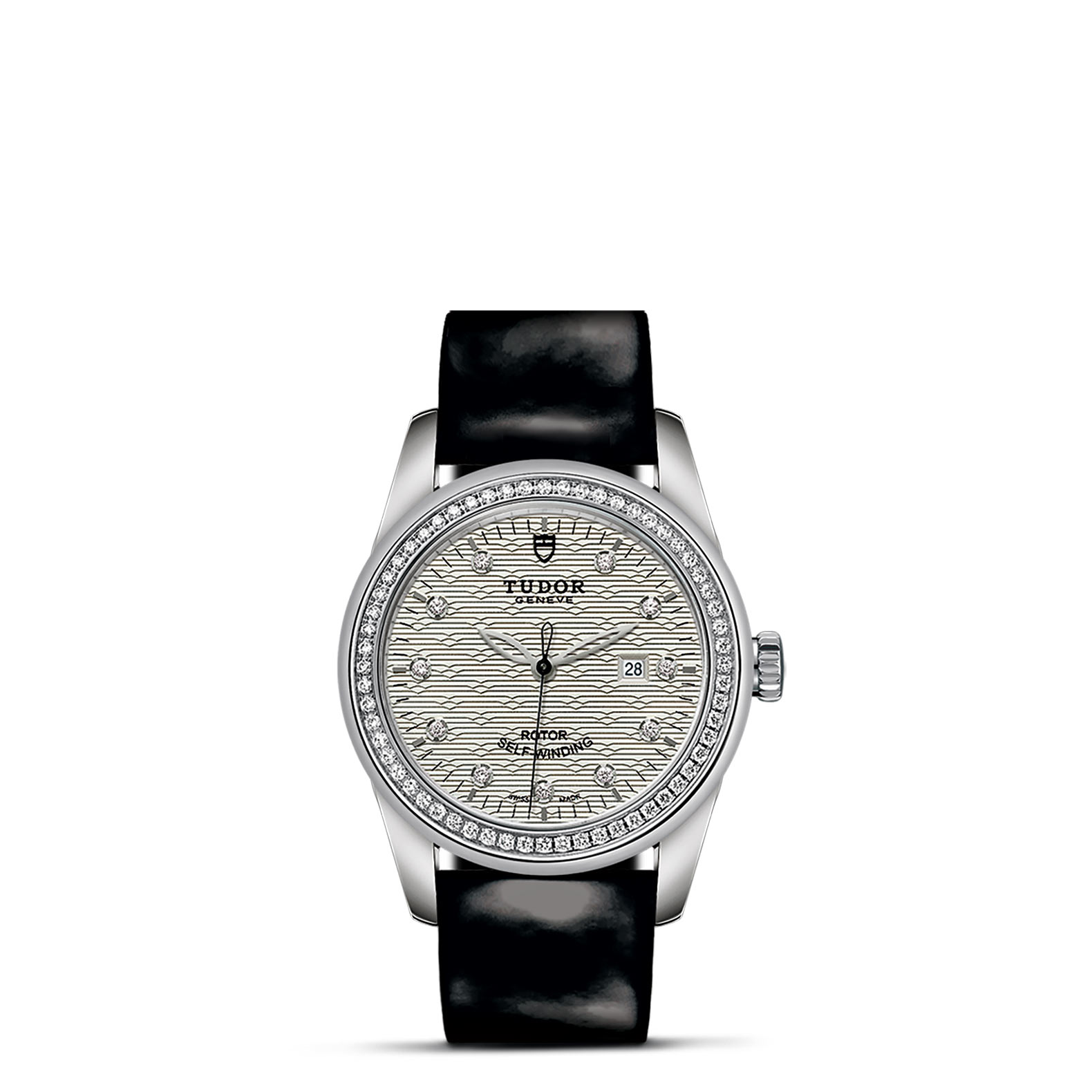 黑色漆皮表带,配摺扣