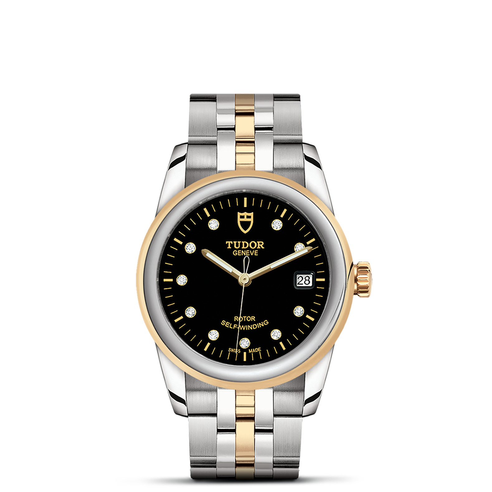 位于6点钟及12点钟位置的首节中间链节由实心黄金制成;其余中间链节由精钢或钢芯及0.2毫米黄金包金制成;摺扣及保险扣