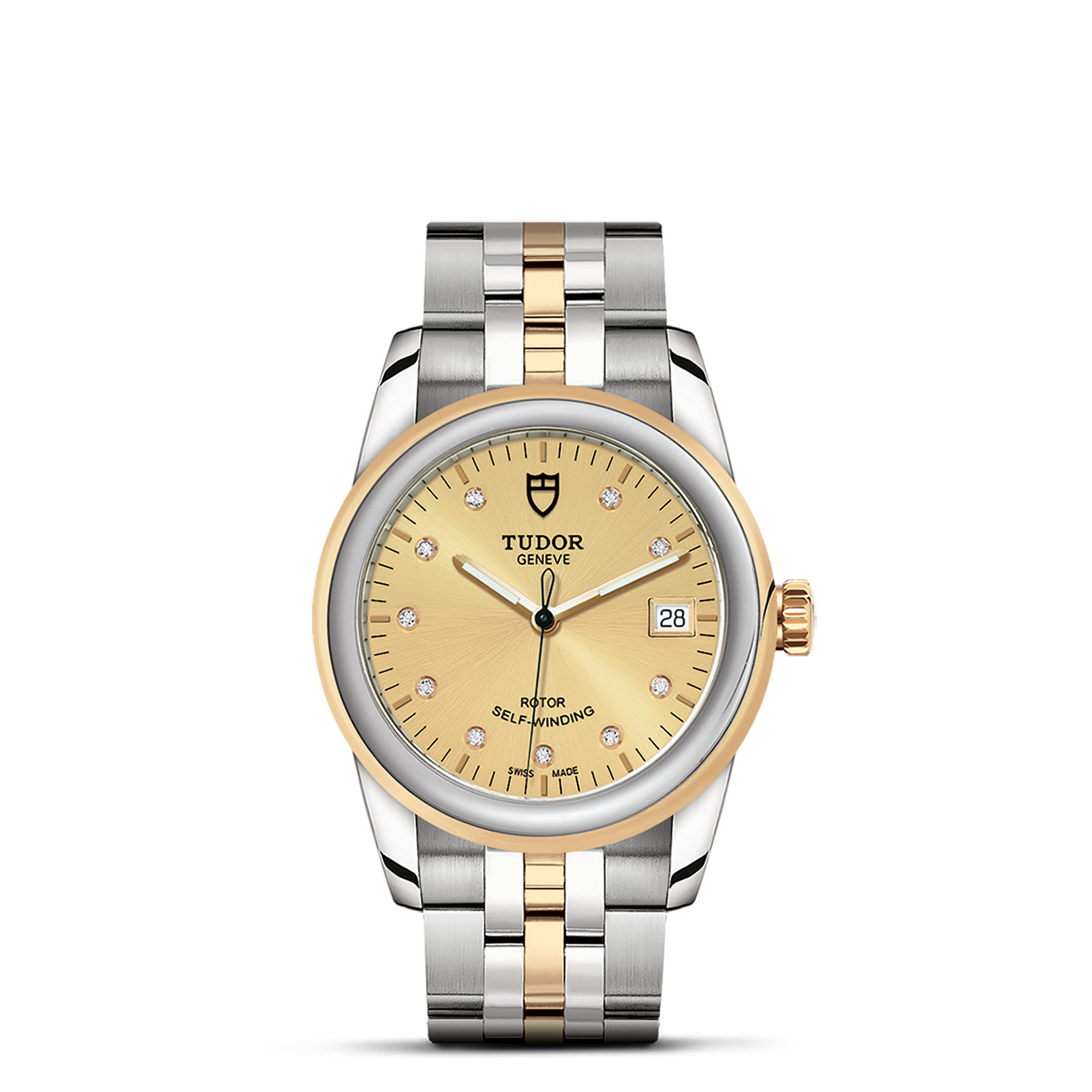 钢,中型款 35至39毫米,不锈钢五链节表带,经磨光及磨砂处理,配帝舵表“T-fit”带扣