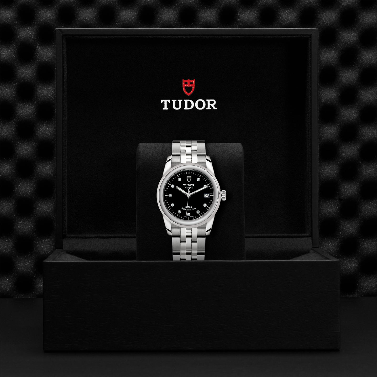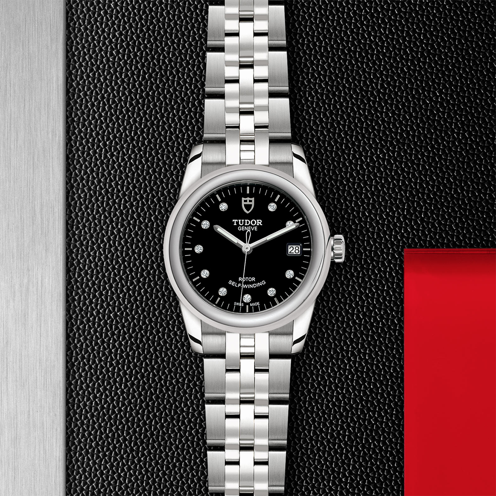 钢,中型款 35至39毫米,不锈钢三链节“铆钉式”表带,经磨光及磨砂处理,配帝舵表“T-fit”带扣