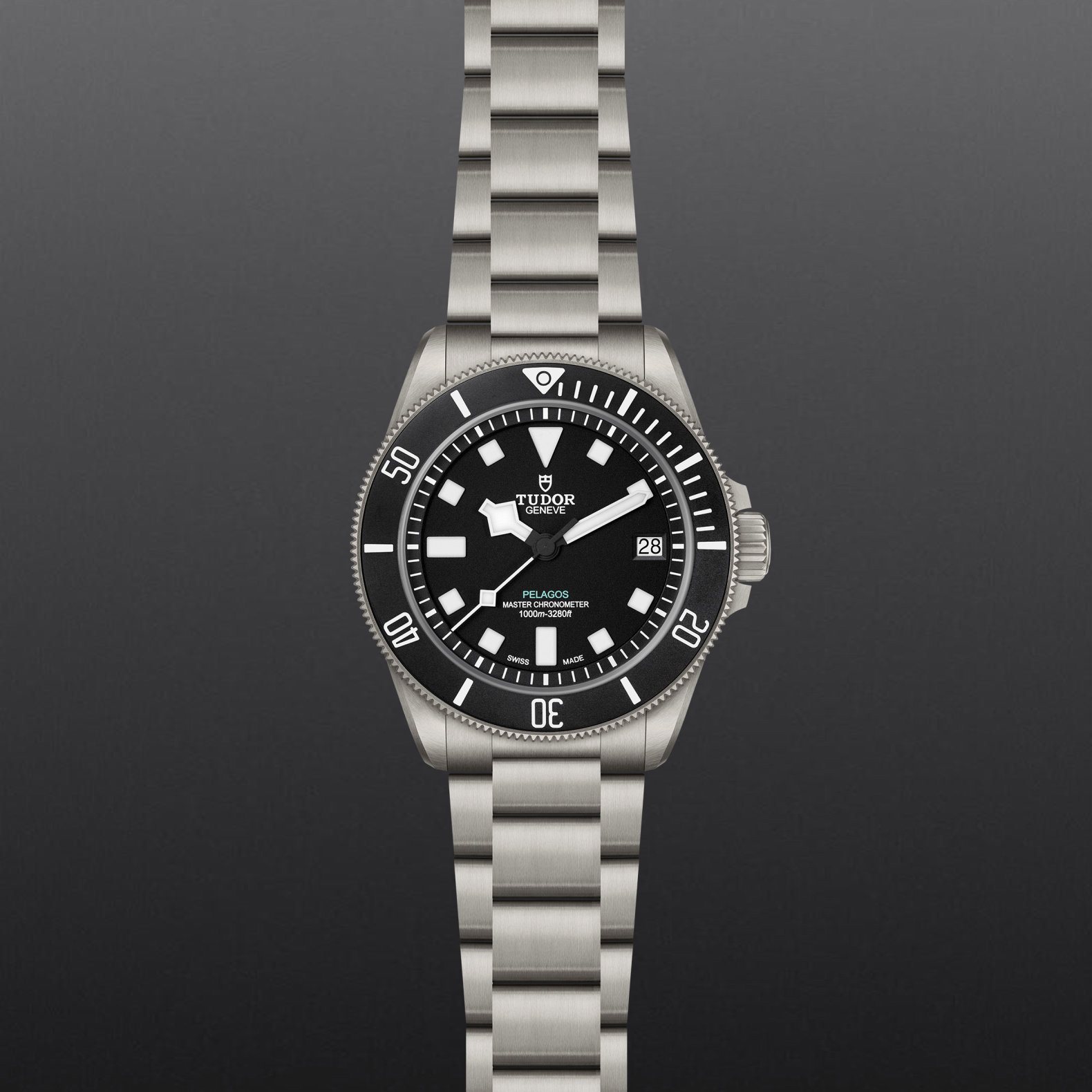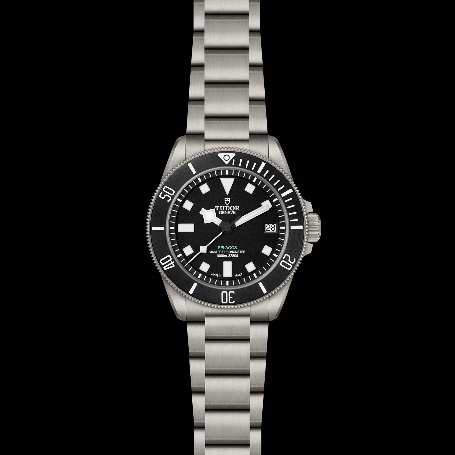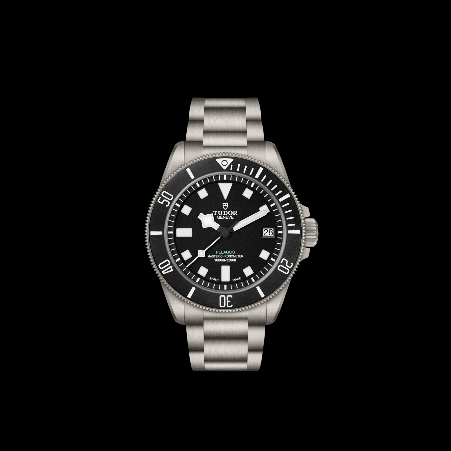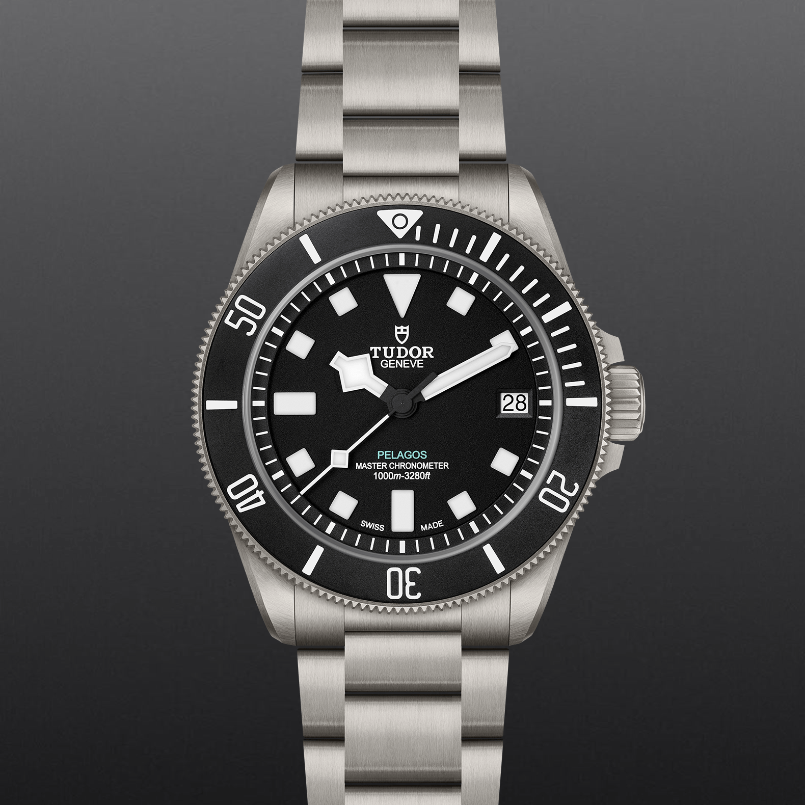 三链节钛金属表带,配帝舵表“T-fit”快速调节带扣、保险扣及潜水延展装置,配备全新视觉指示系统