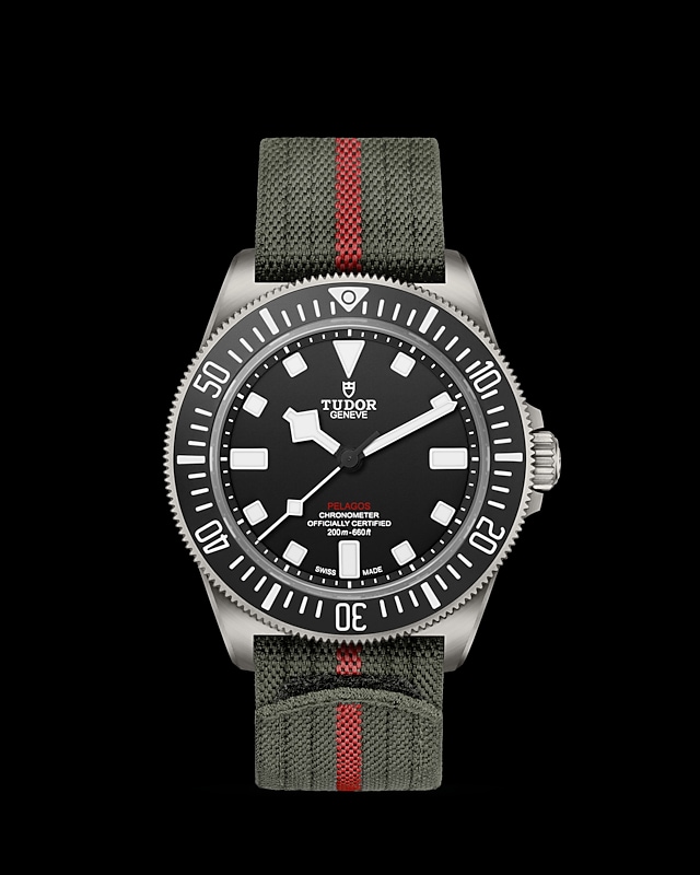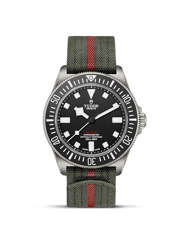 领潜型FXD腕表由帝舵表与法国海军合作研发,其中FXD意指表壳上格外坚硬的固定式表带杆。防水深达200米(660英尺),专为水下潜行而设计,适合作专业用途。系列另一款腕表以历史灵感重塑现代“军用潜水腕表”(Milsub)杰作。腕表搭载高性能帝舵表原厂机芯,配备钛金属表壳及单向旋转计时外圈,而其固定式表带杆的设计更借鉴自与海军潜水员数十载的合作经验。外观上,它承袭了品牌于1960年代末推出的Oyster Prince Submariner,配备符合军用潜水腕表规格的部件。简而言之,FXD系列启发自帝舵表与海军组织的合作。