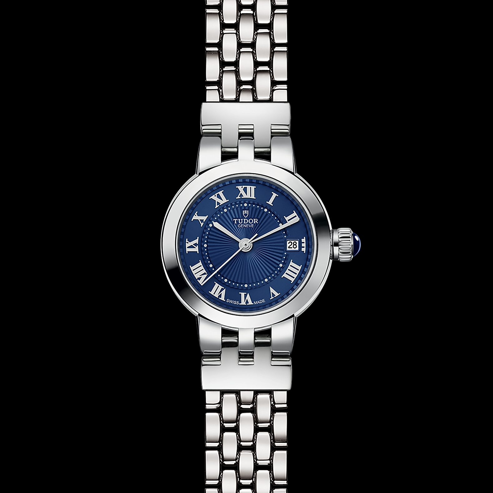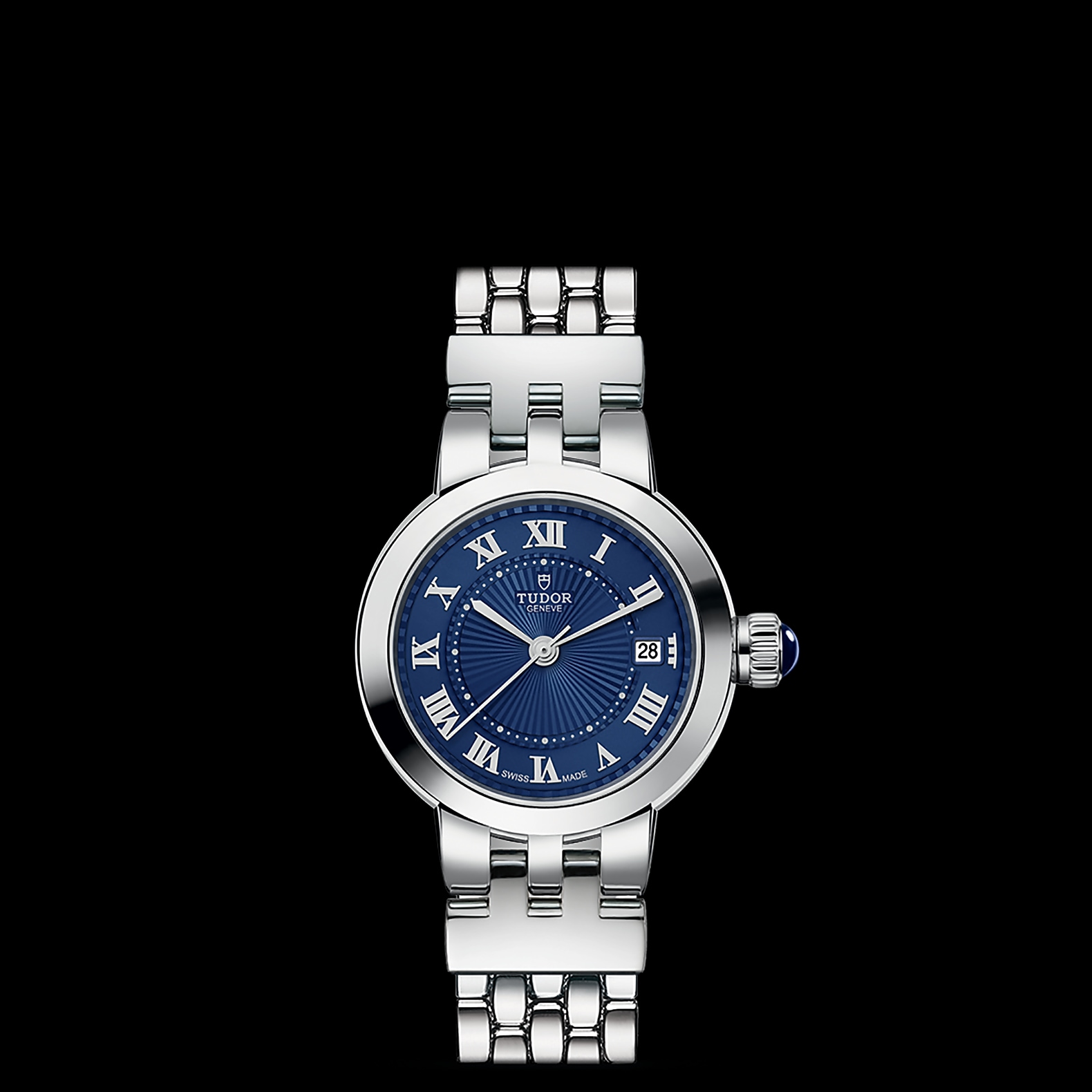 玫瑰系列重新演绎,秉承古典优雅及永恒经典的精神,善用品牌名垂青史的美学特色。玫瑰系列仅以不锈钢制成,备有六种配置和三种不同尺寸,表壳直径分别为26、30及34毫米,蛋白色表盘饰有精美的浮雕图案,以蓝色漆面罗马数字或钻石作为钟点标记。今年,玫瑰系列的所有尺寸均可选配新款“帝舵蓝”表盘。