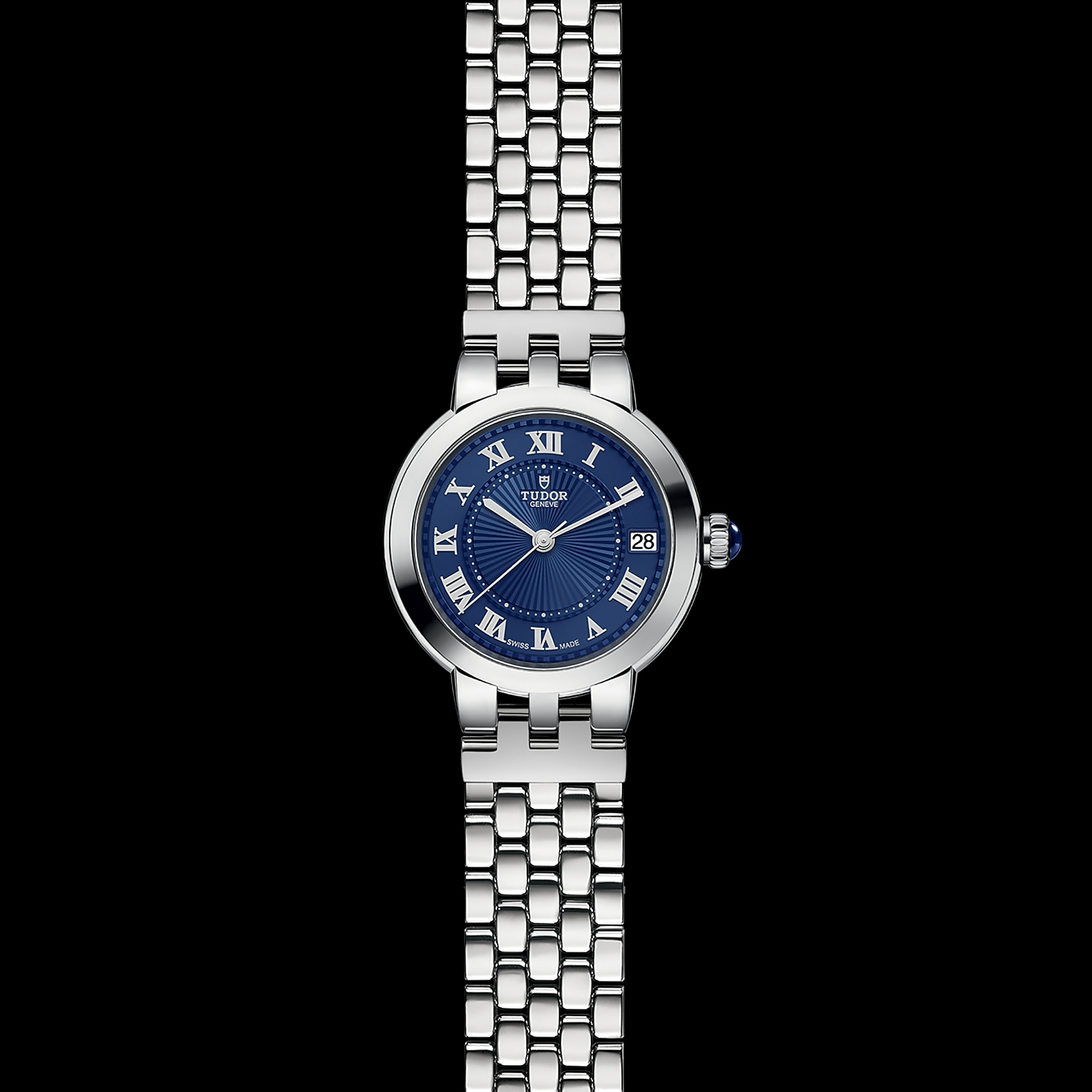玫瑰系列重新演绎,秉承古典优雅及永恒经典的精神,善用品牌名垂青史的美学特色。玫瑰系列仅以不锈钢制成,备有六种配置和三种不同尺寸,表壳直径分别为26、30及34毫米,蛋白色表盘饰有精美的浮雕图案,以蓝色漆面罗马数字或钻石作为钟点标记。今年,玫瑰系列的所有尺寸均可选配新款“帝舵蓝”表盘。