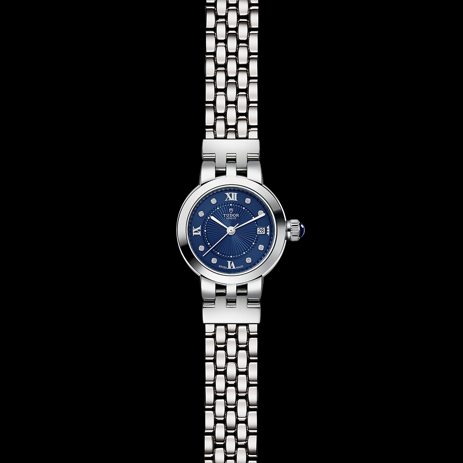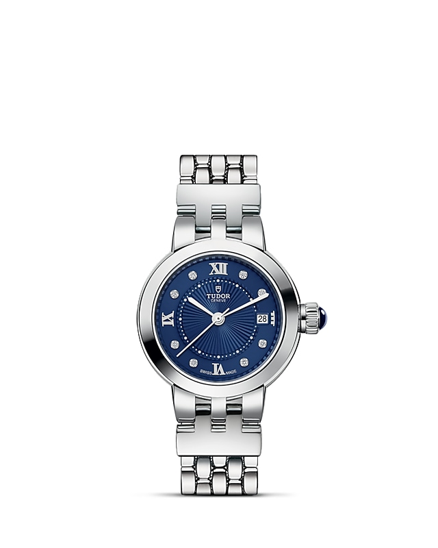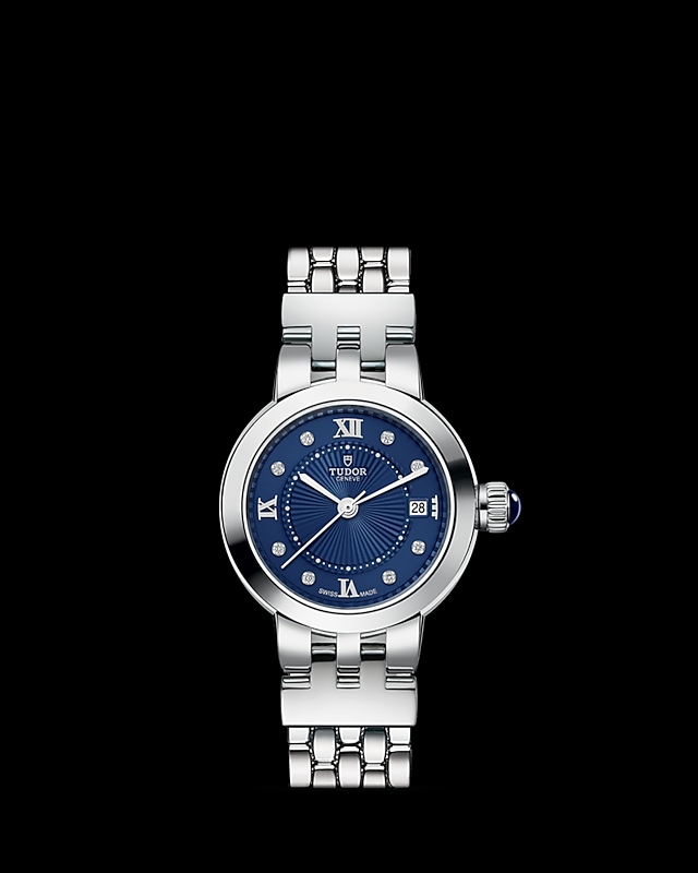 玫瑰系列重新演绎,秉承古典优雅及永恒经典的精神,善用品牌名垂青史的美学特色。玫瑰系列仅以不锈钢制成,备有六种配置和三种不同尺寸,表壳直径分别为26、30及34毫米,蛋白色表盘饰有精美的浮雕图案,以蓝色漆面罗马数字或钻石作为钟点标记。今年,玫瑰系列的所有尺寸均可选配新款“帝舵蓝”表盘。