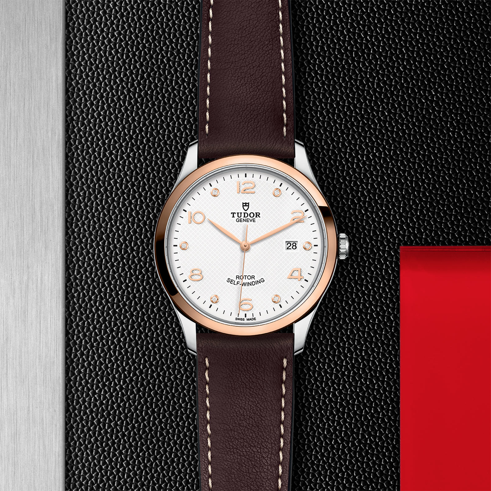钢,大型款 ≥40毫米,不锈钢三链节表带,经磨光及磨砂处理,链节两侧光滑,配备帝舵表“T-fit”带扣