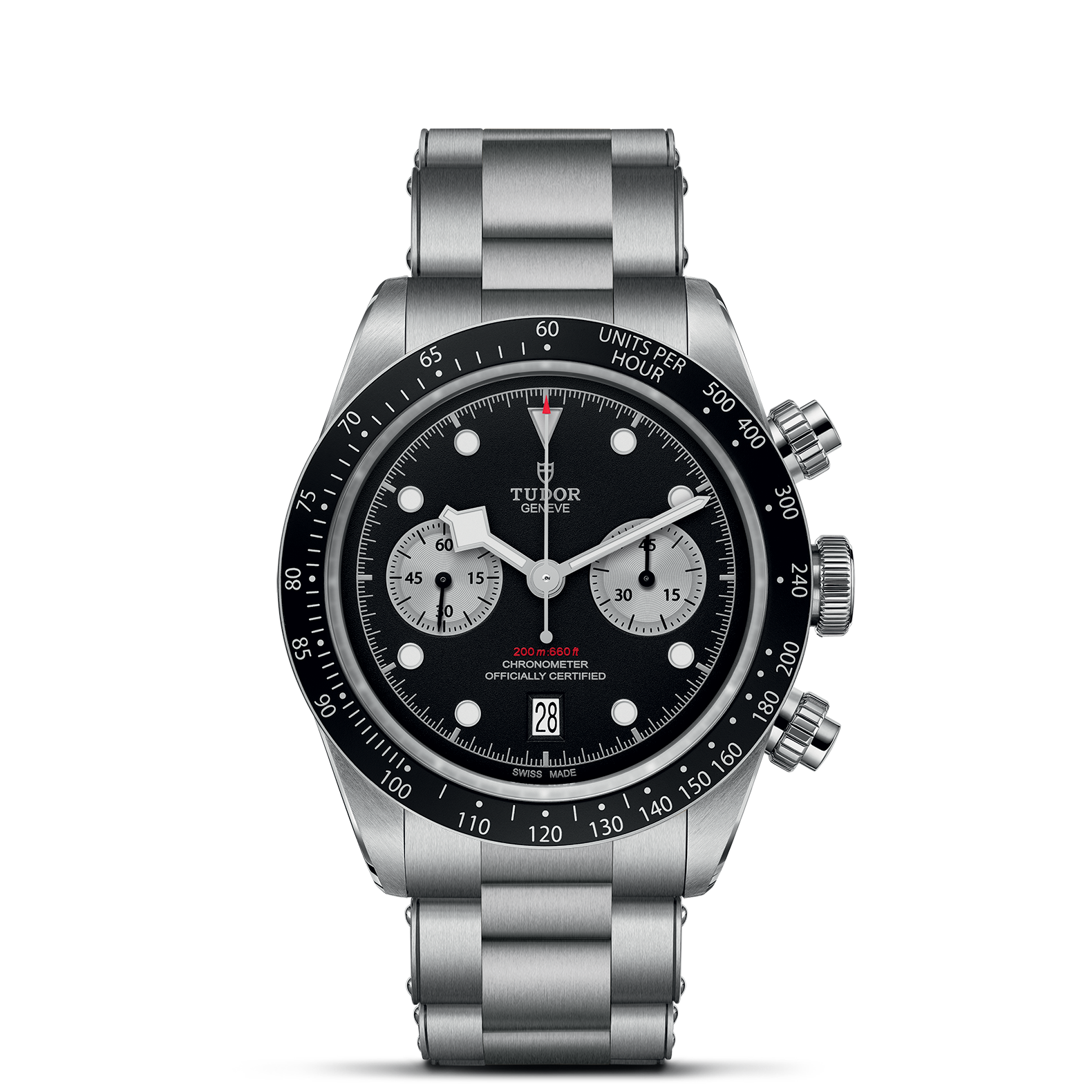 钢,大型款 ≥40毫米,不锈钢三链节表带,经磨光及磨砂处理,链节两侧光滑,配备帝舵表“T-fit”带扣