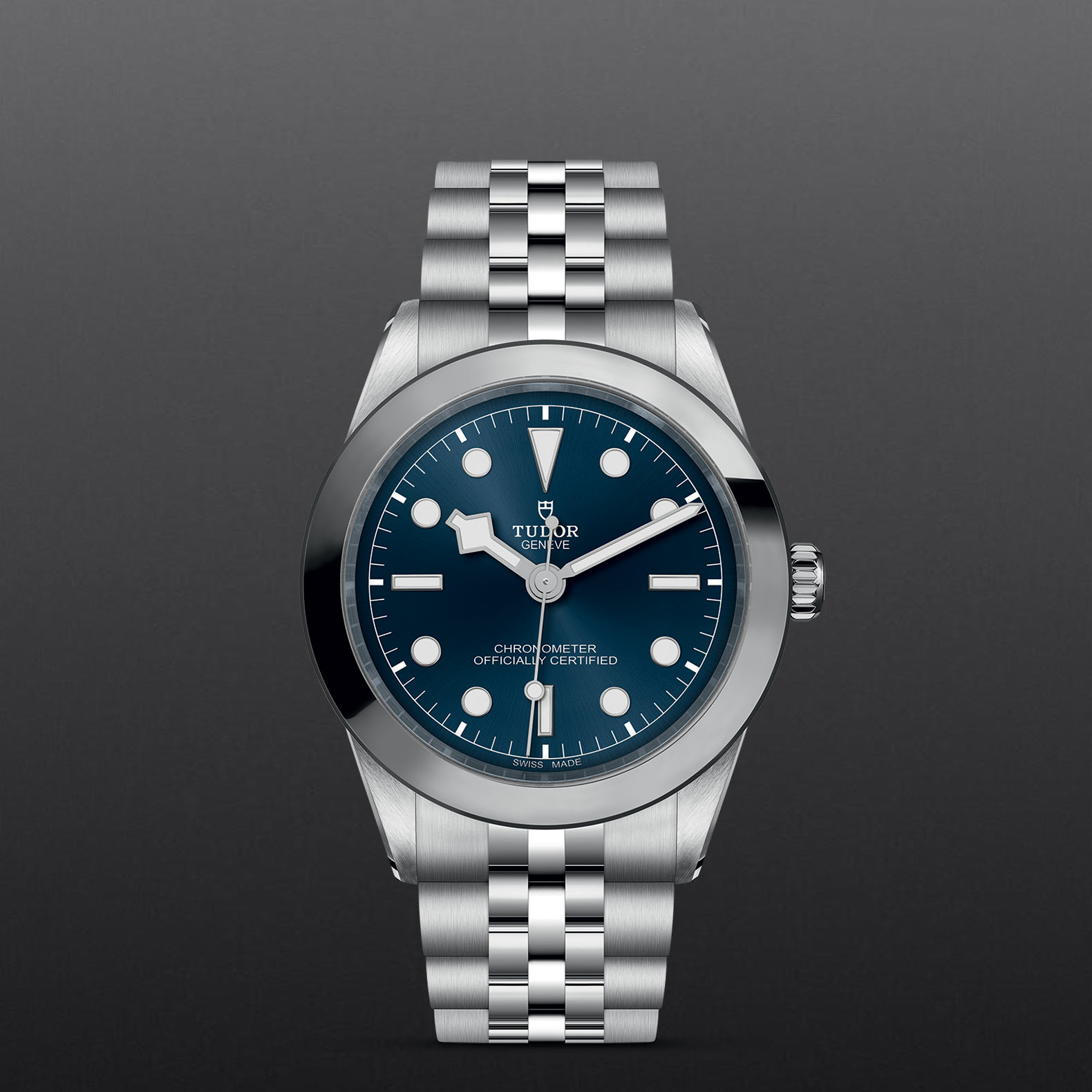 钢,大型款 ≥40毫米,不锈钢五链节表带,经磨光及磨砂处理,配帝舵表“T-fit”带扣
