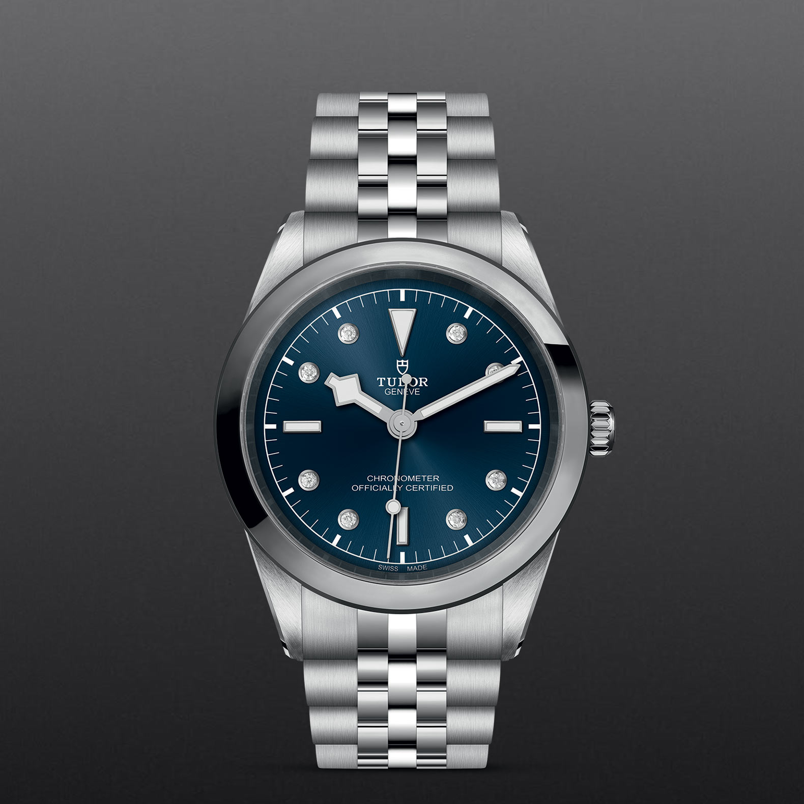磨光及磨砂不锈钢表带,配“T-fit”摺扣及保险扣